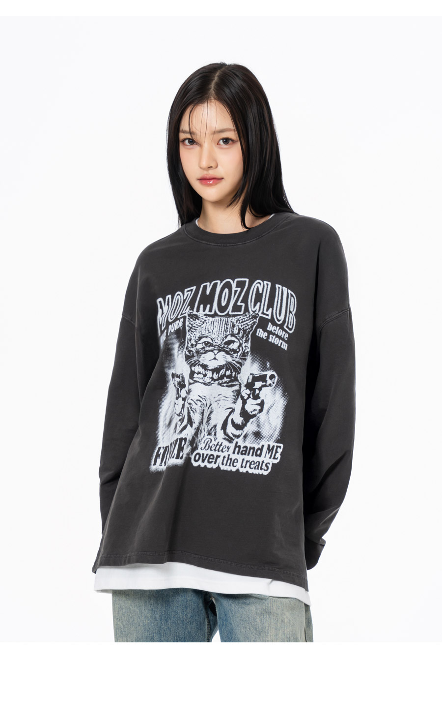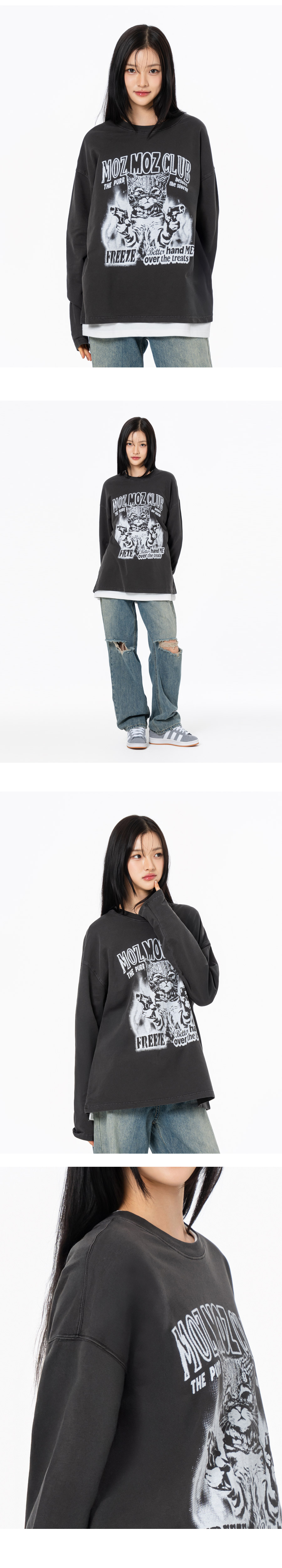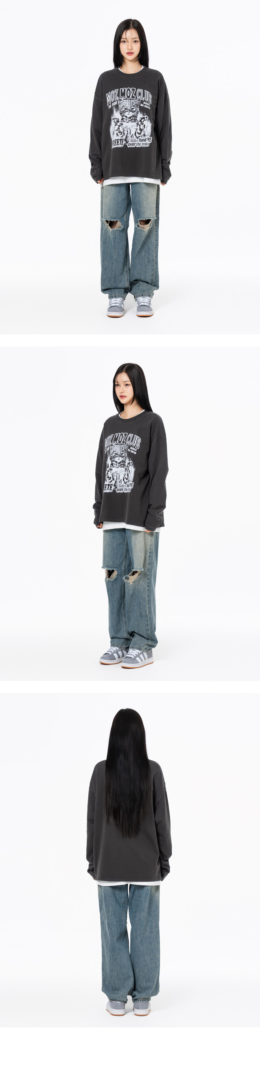 프리즈 그래픽 피그먼트 롱 슬리브 챠콜