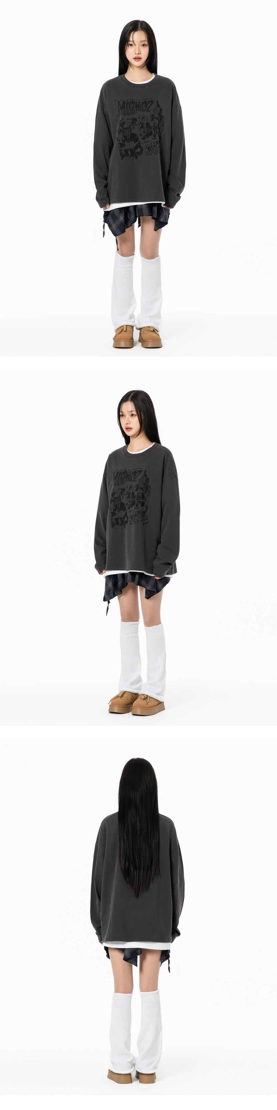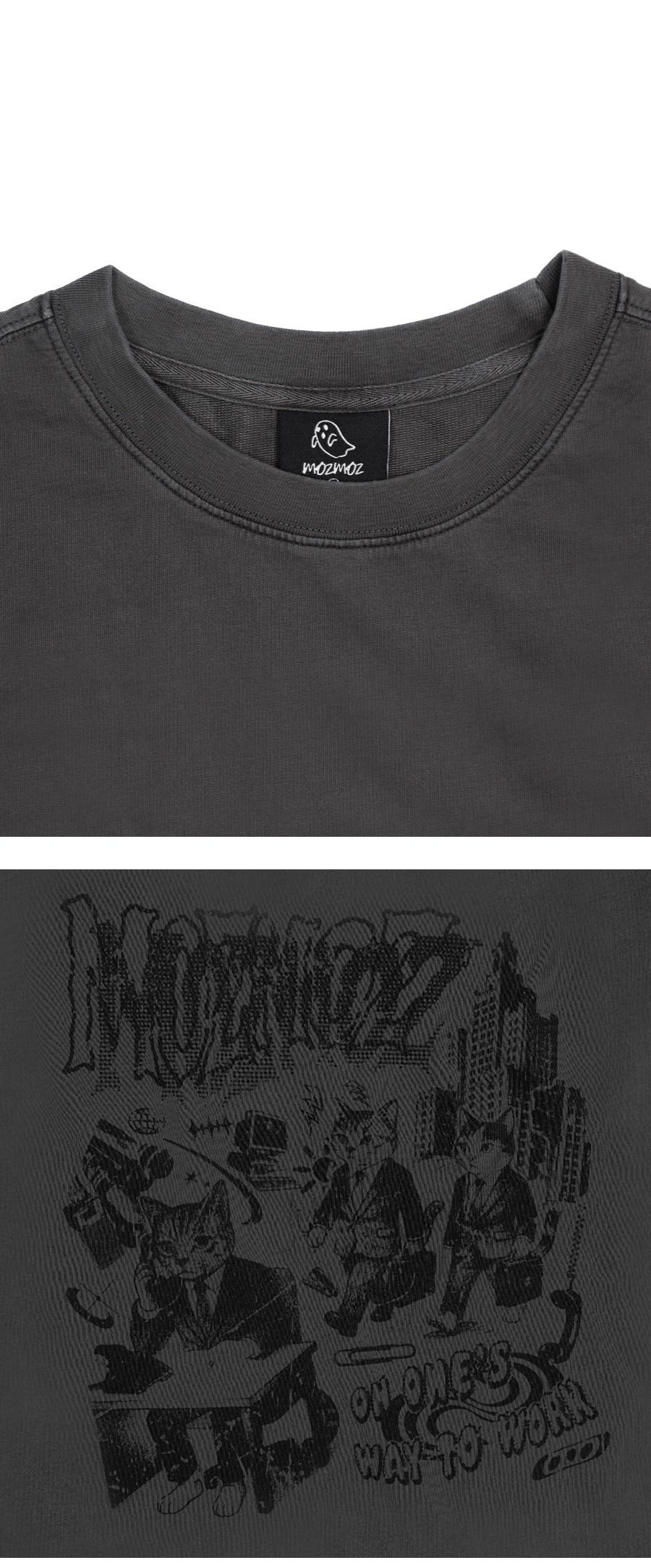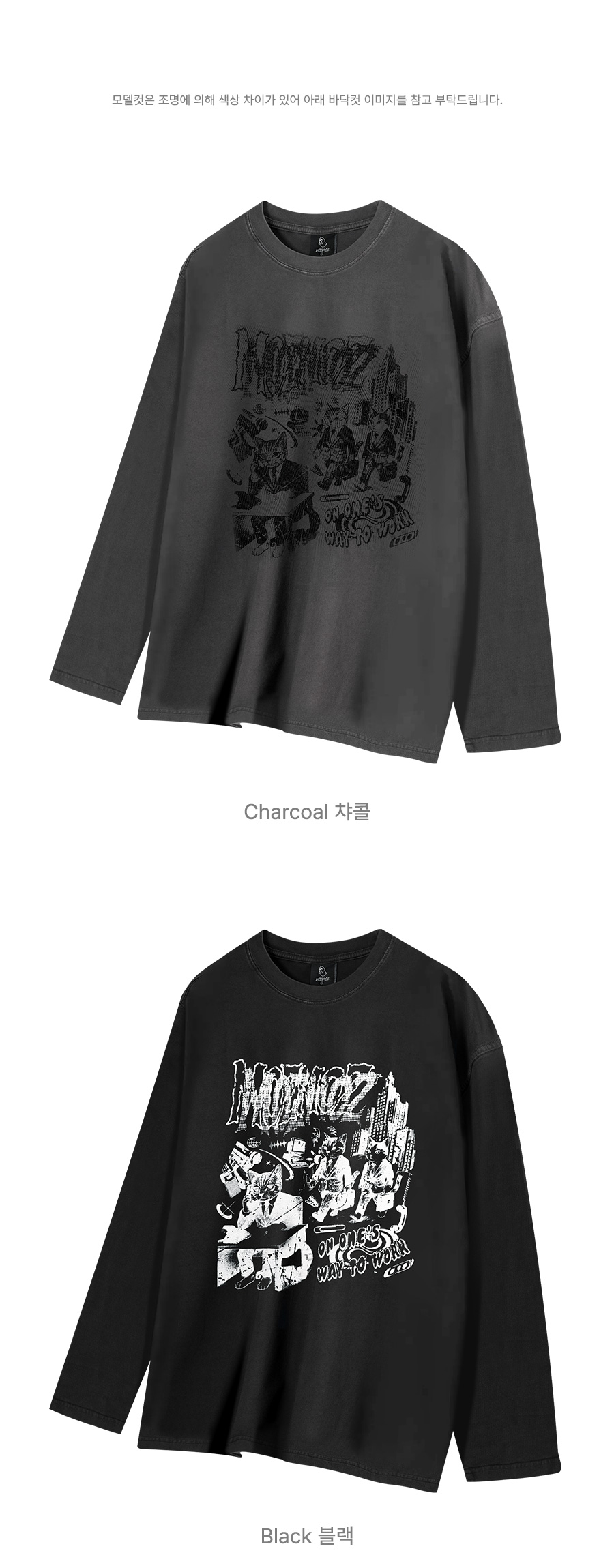 출근냥 그래픽 피그먼트 롱 슬리브 블랙