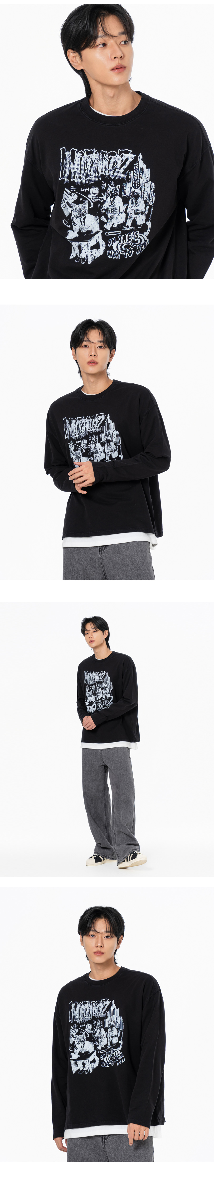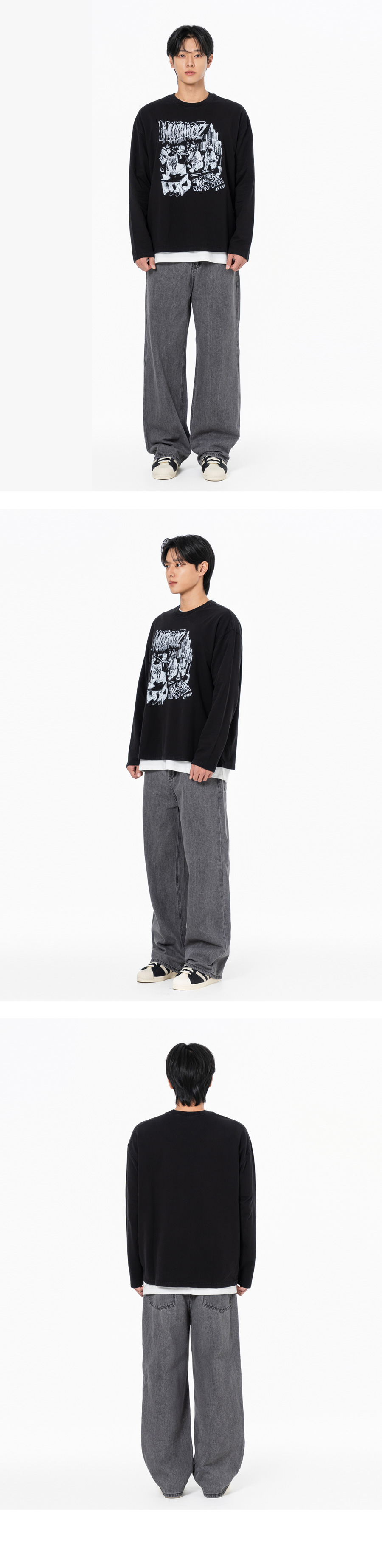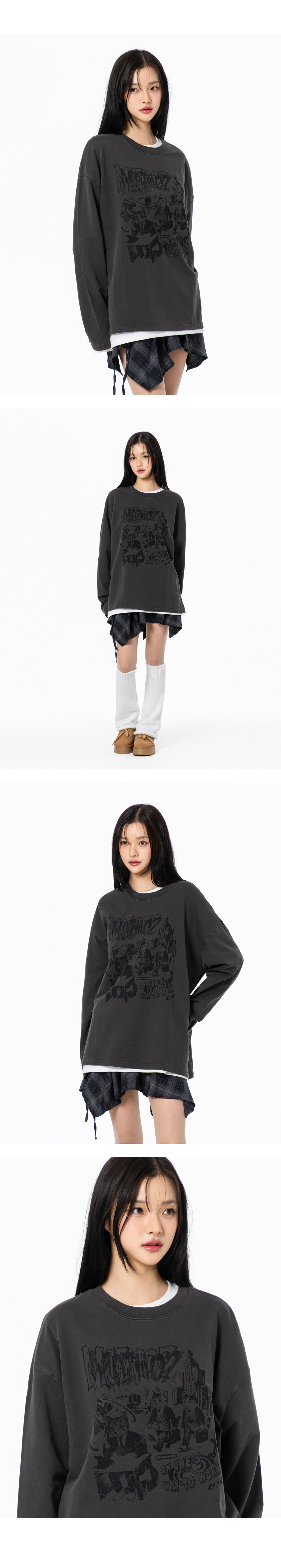 출근냥 그래픽 피그먼트 롱 슬리브 블랙