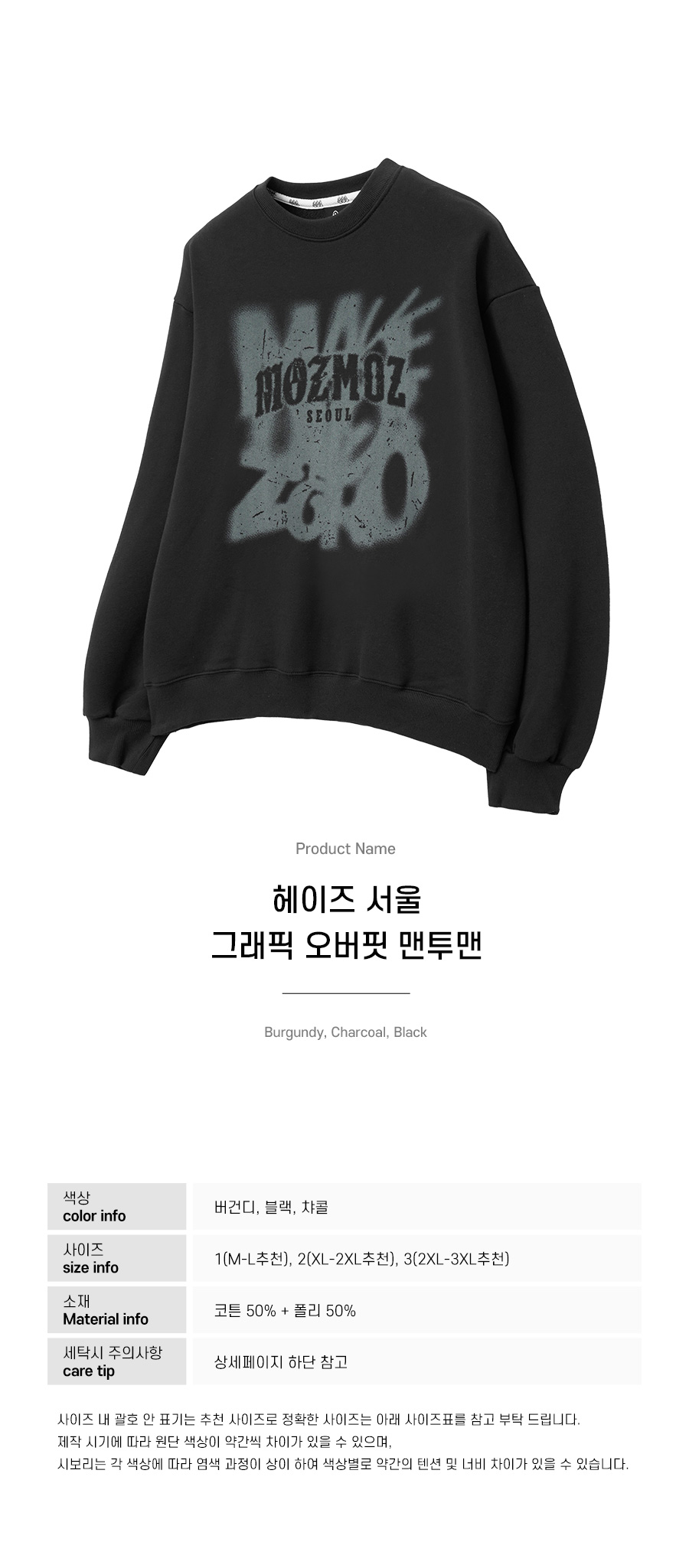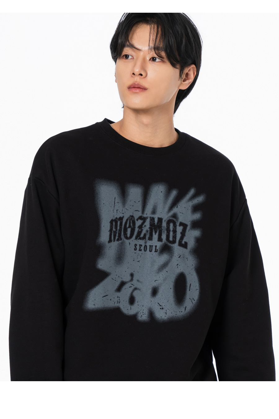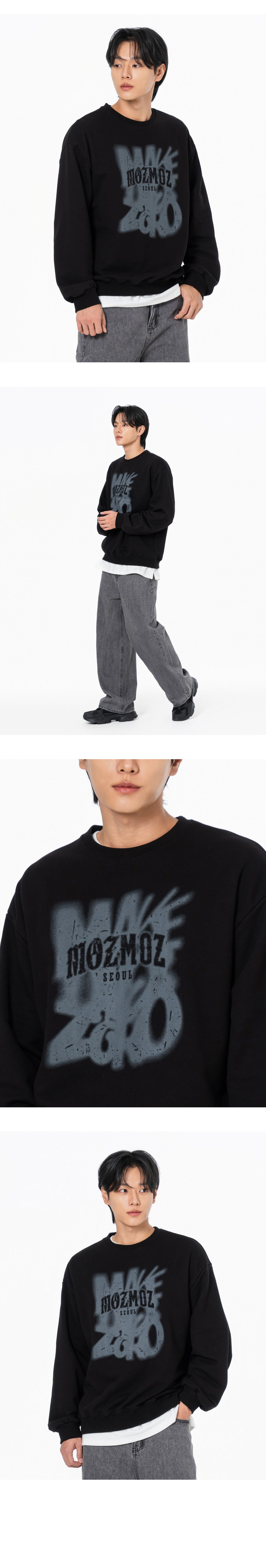 헤이즈서울 그래픽 오버핏 맨투맨 블랙