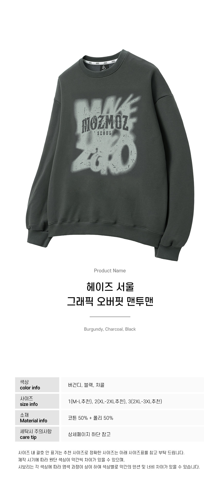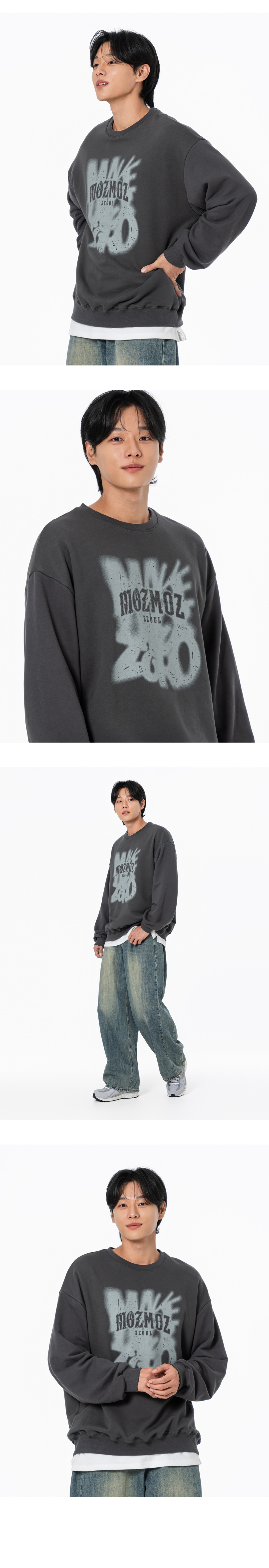 헤이즈서울 그래픽 오버핏 맨투맨 챠콜