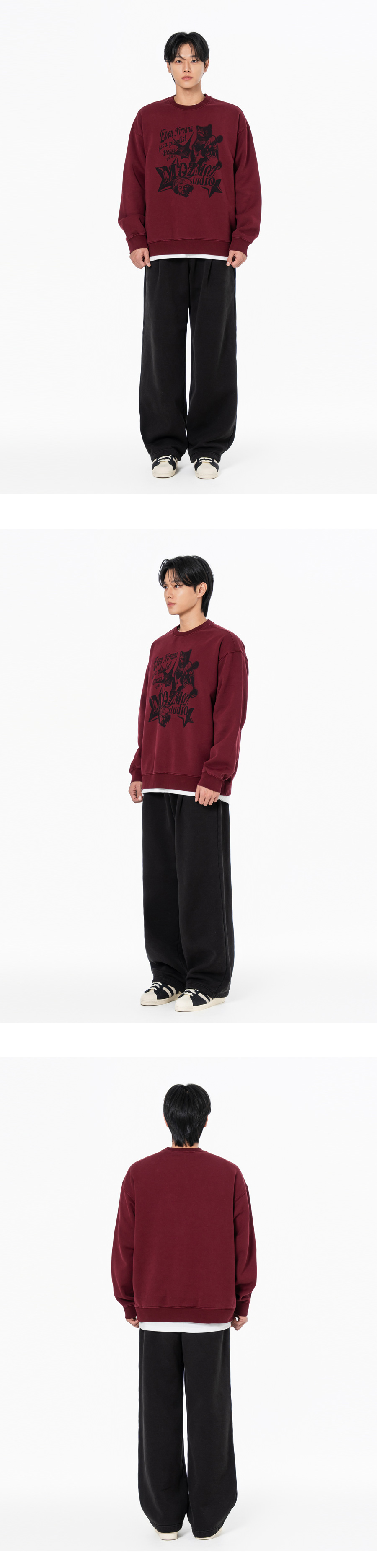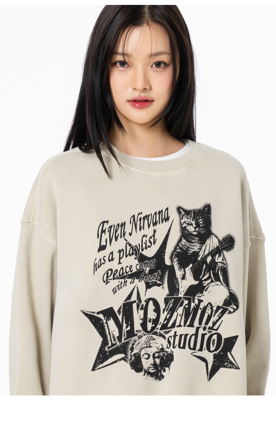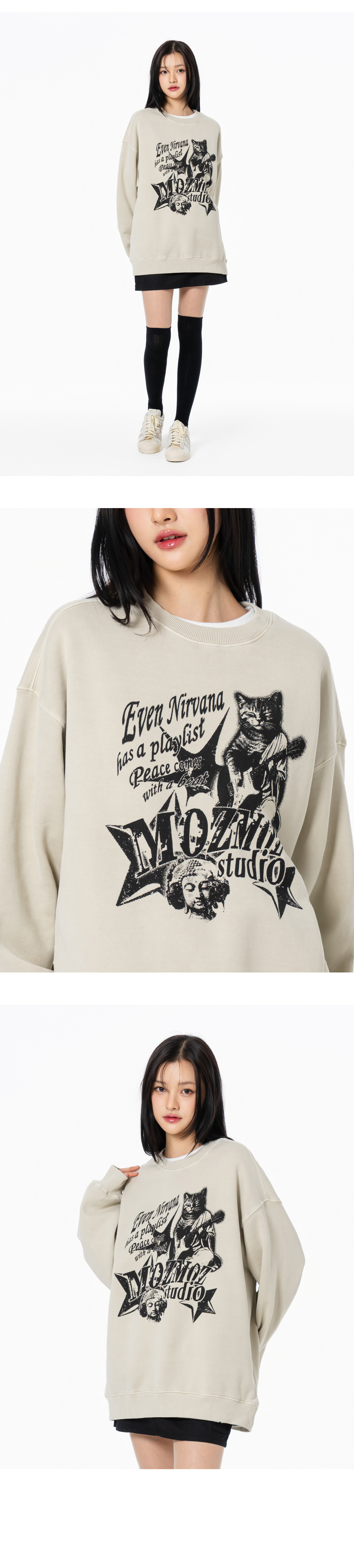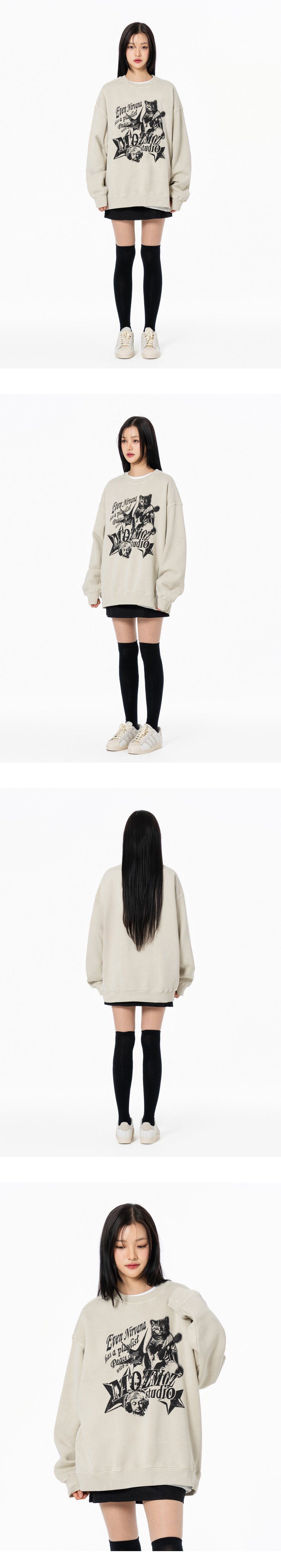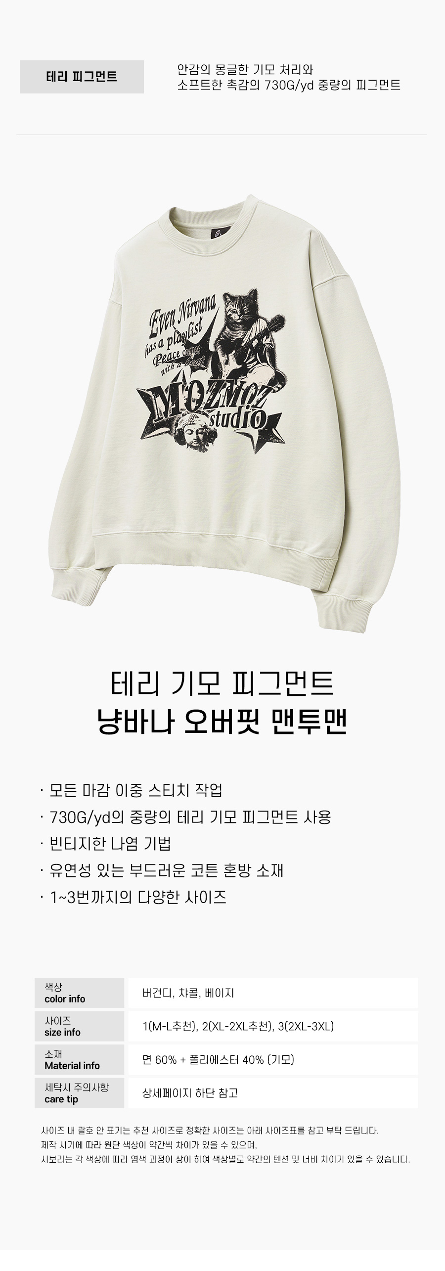 냥바나 테리 기모 피그먼트 오버핏 맨투맨 베이지