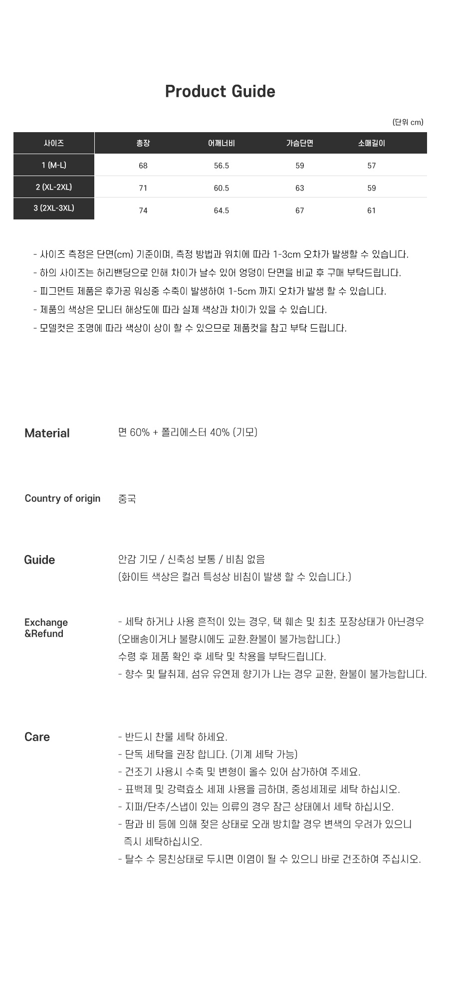 | 세탁방법및 취급시 주의사항 | 상세설명참조 | ||