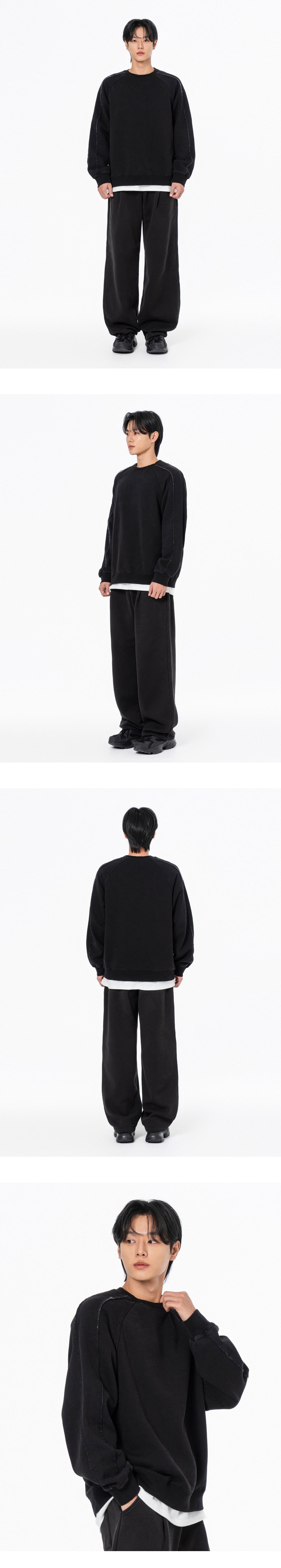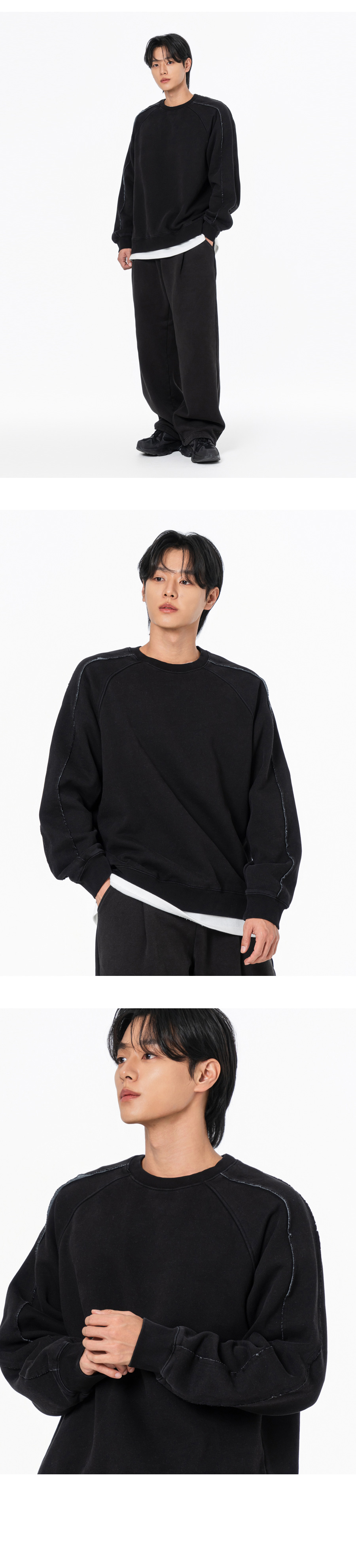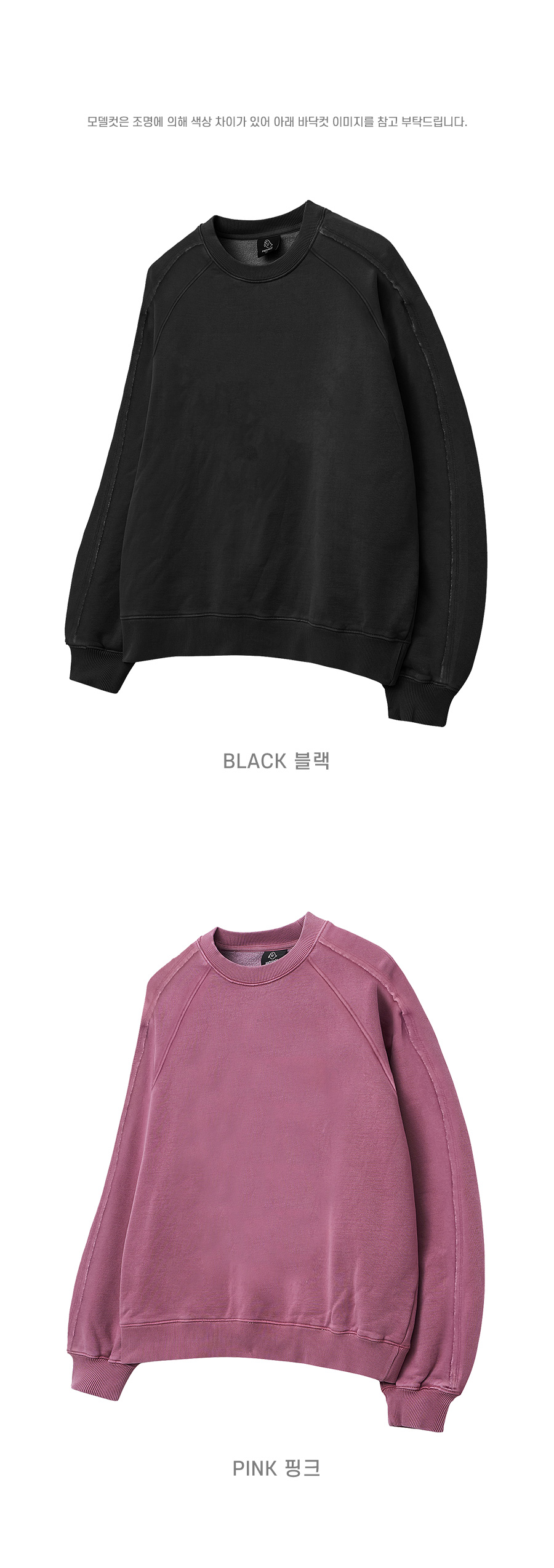 컷오프 레글런 테리 기모 피그먼트 오버핏 맨투맨 블랙