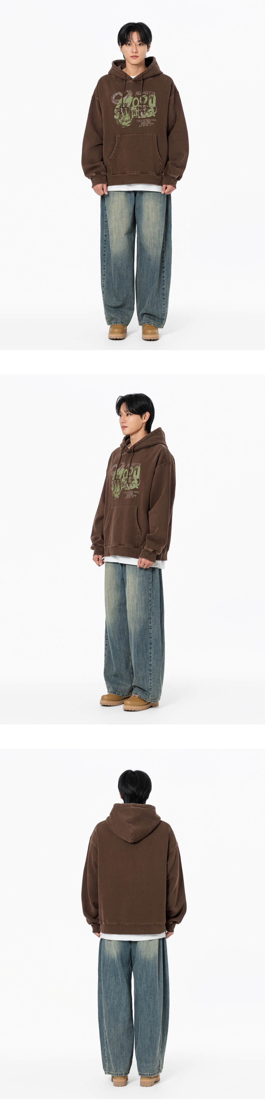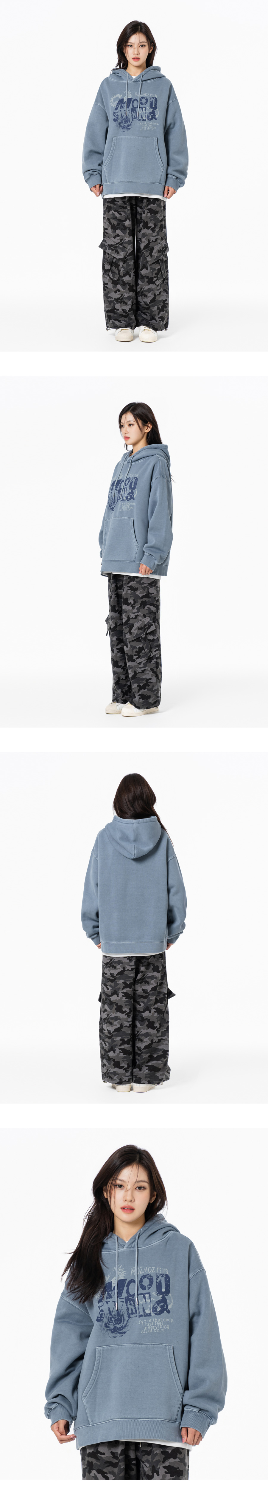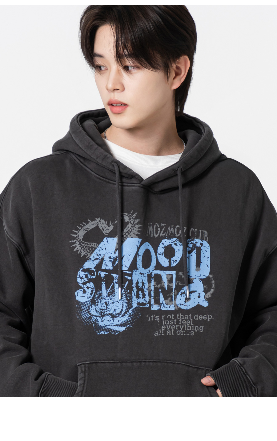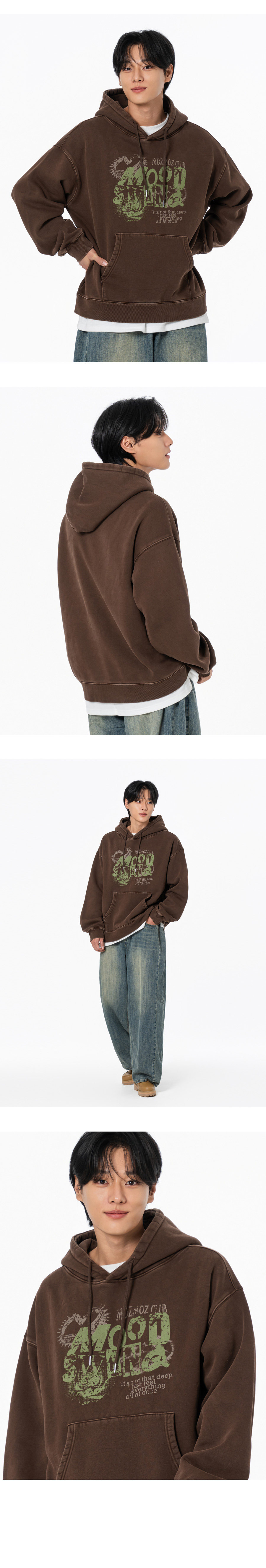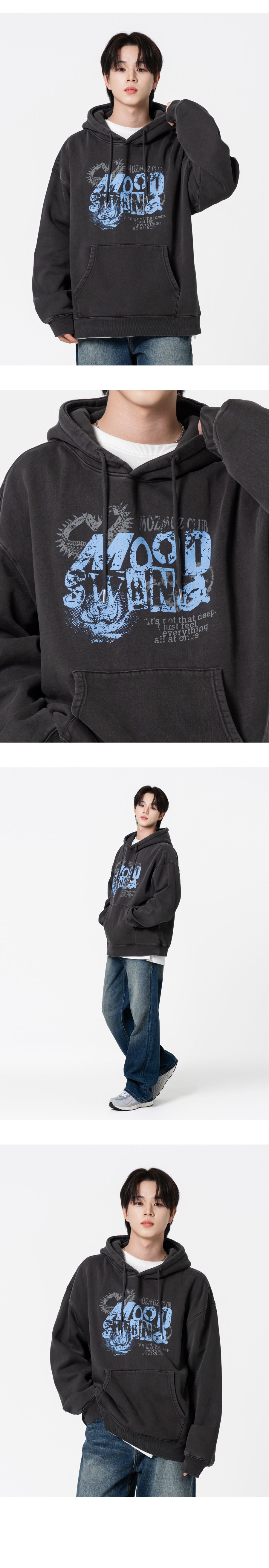 무드스윙 테리 기모 피그먼트 오버핏 후드 챠콜
