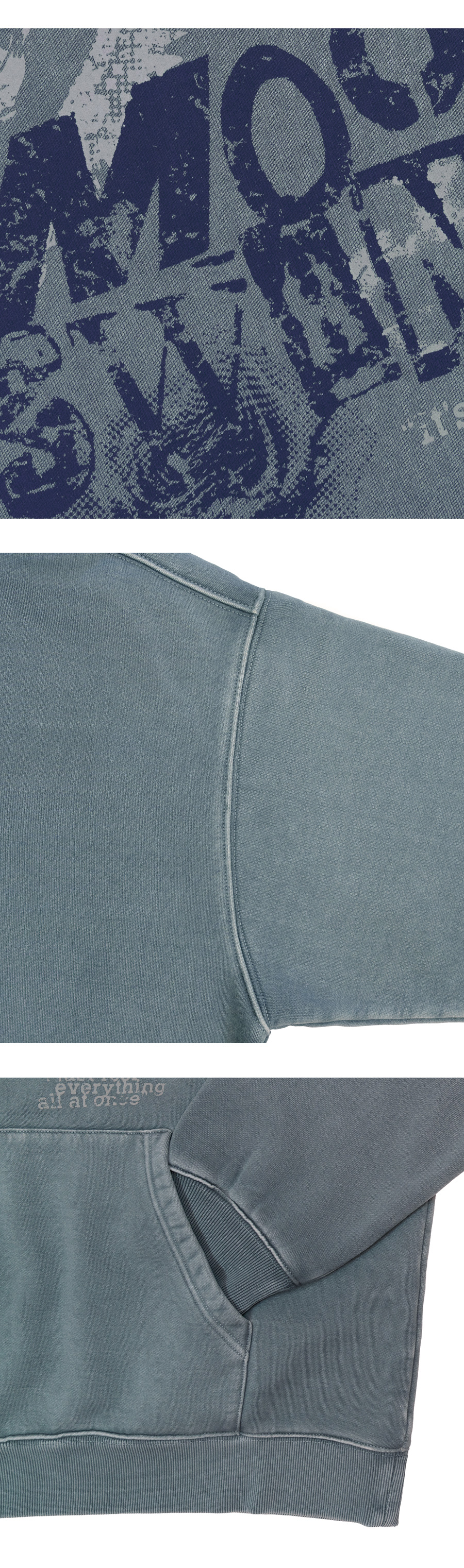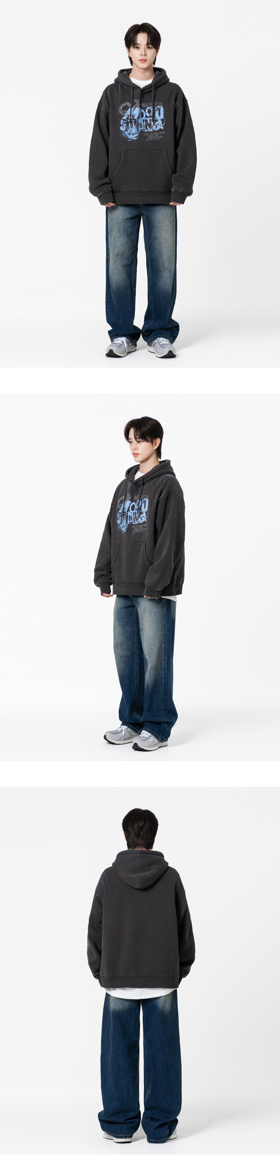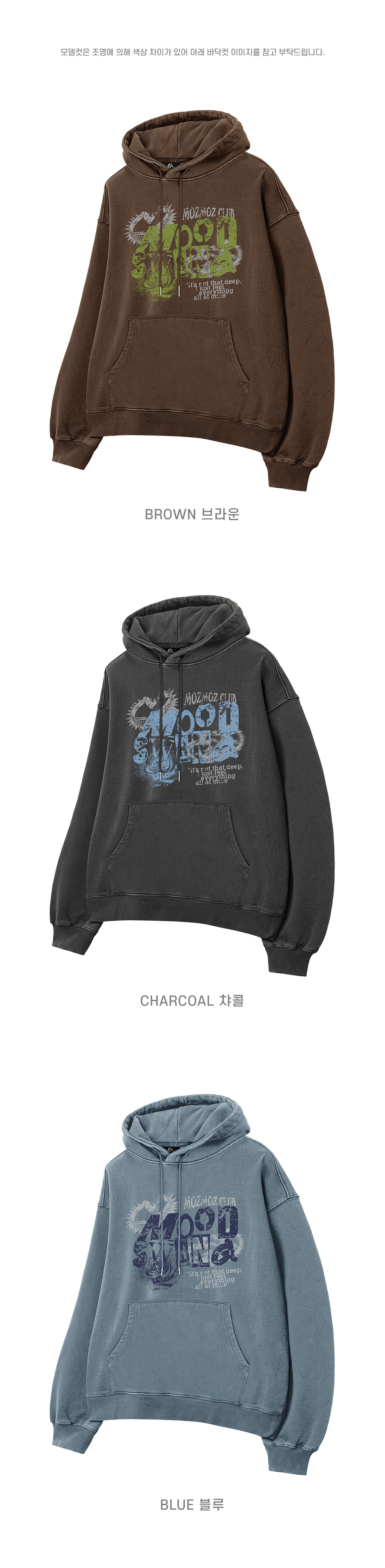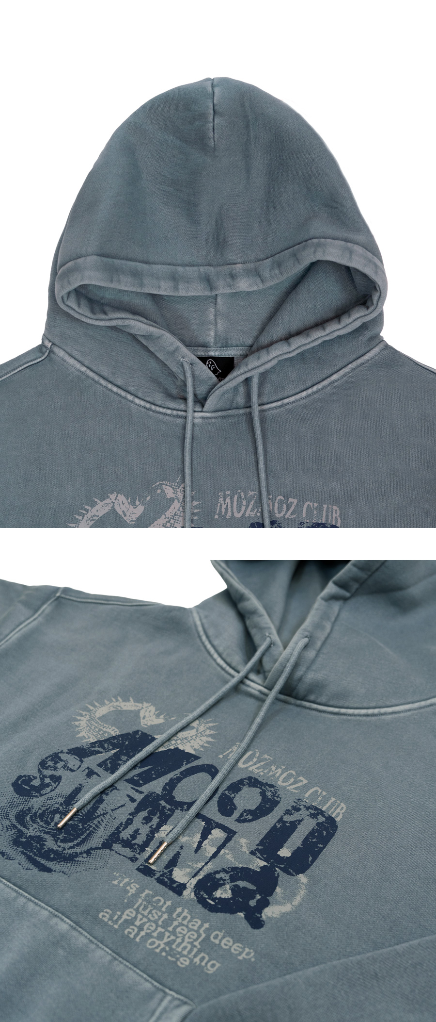 무드스윙 테리 기모 피그먼트 오버핏 후드 블루