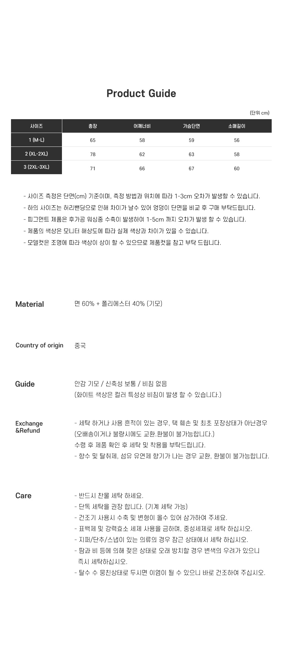 | 세탁방법및 취급시 주의사항 | 상세설명참조 | ||