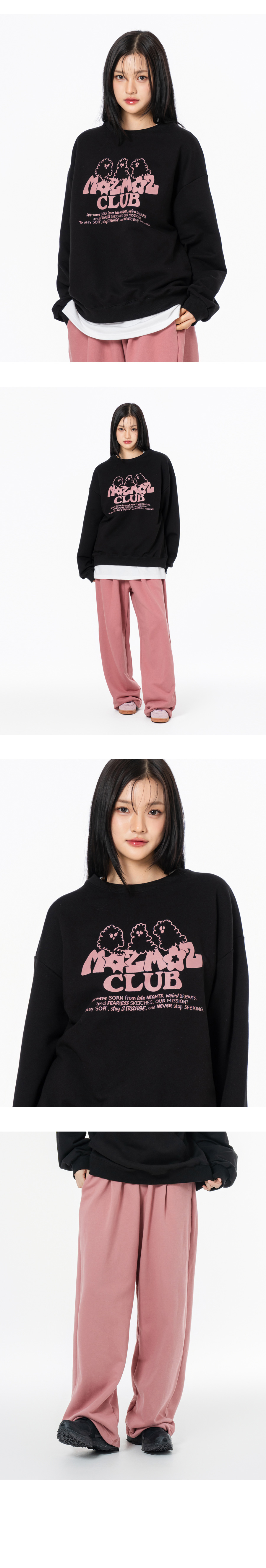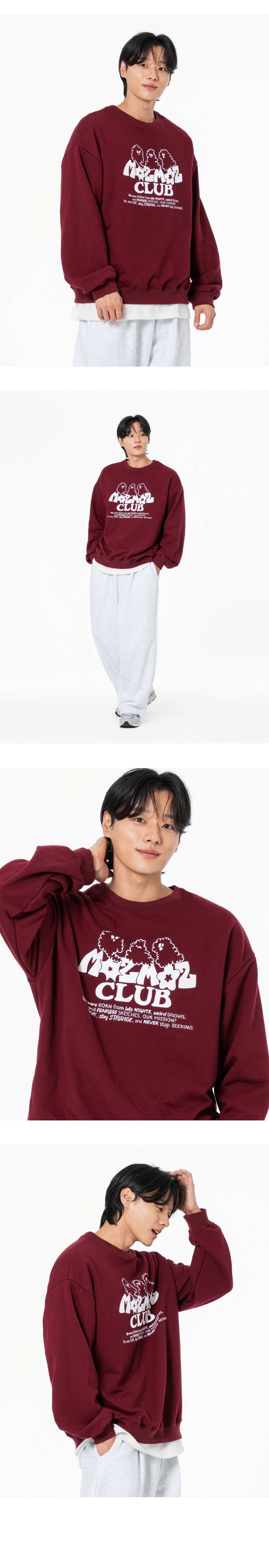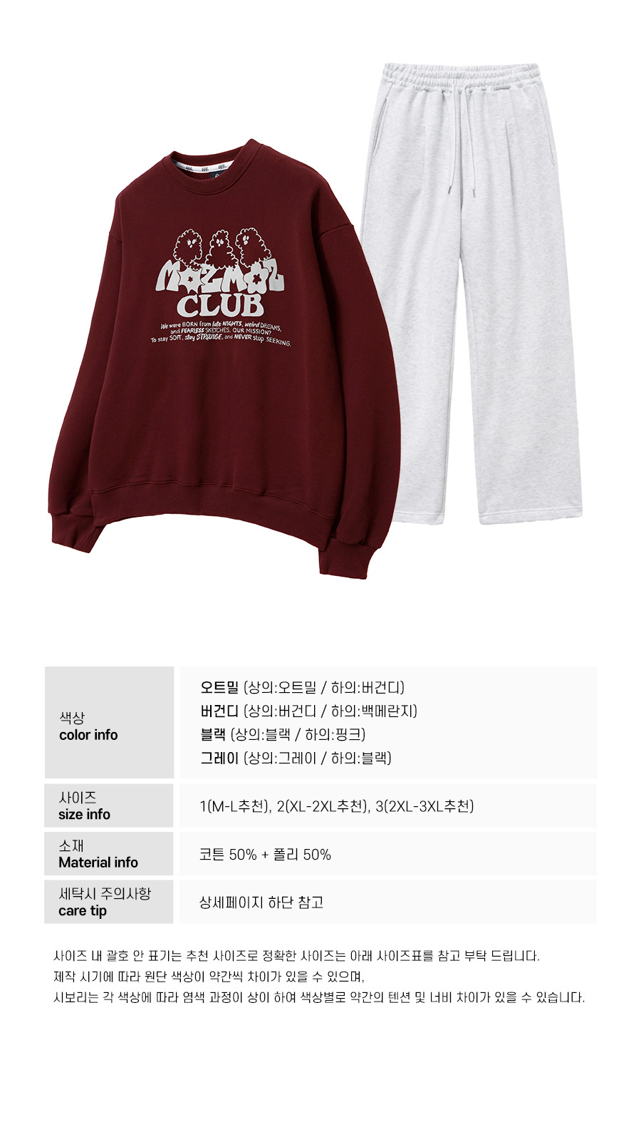 [SET] 고스트 클라우드 오버핏 맨투맨 + 소프트 쭈리 원턱 트레이닝팬츠 버건디