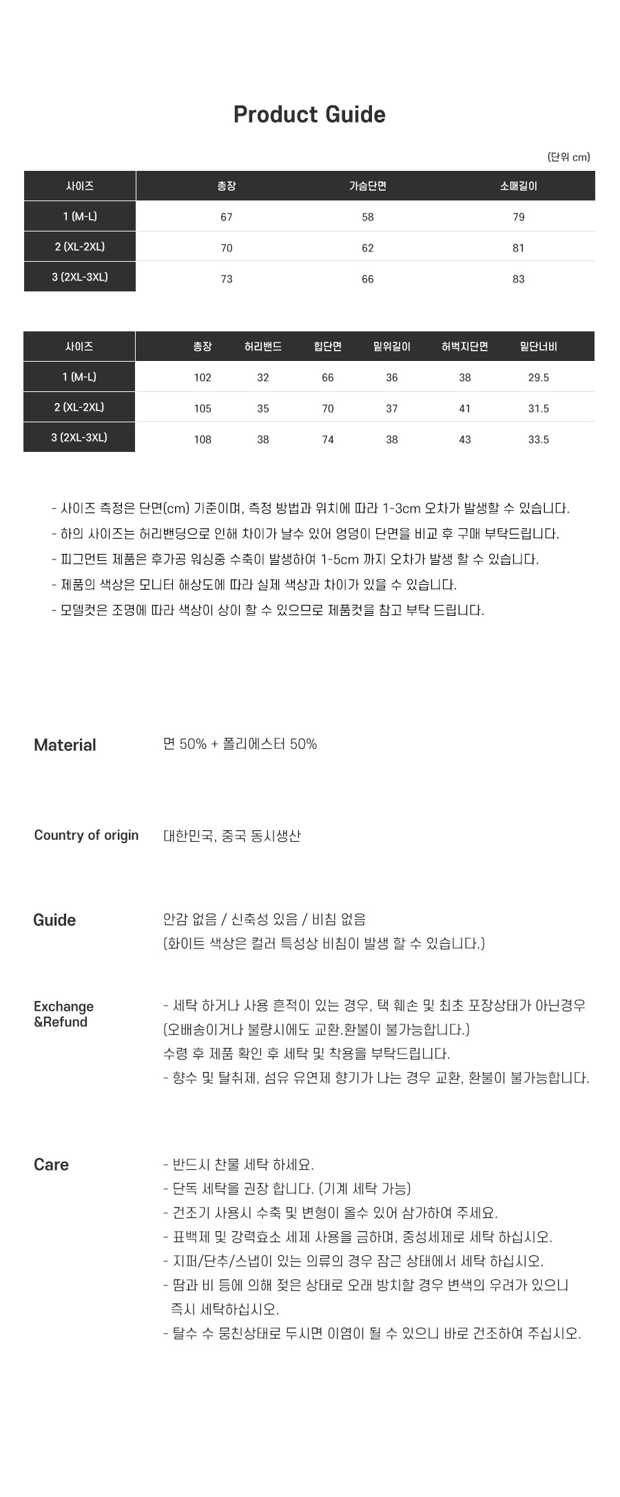 | 세탁방법및 취급시 주의사항 | 상세설명참조 | ||
