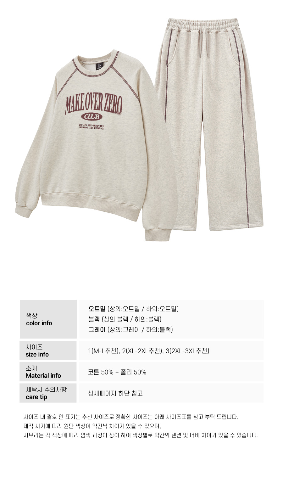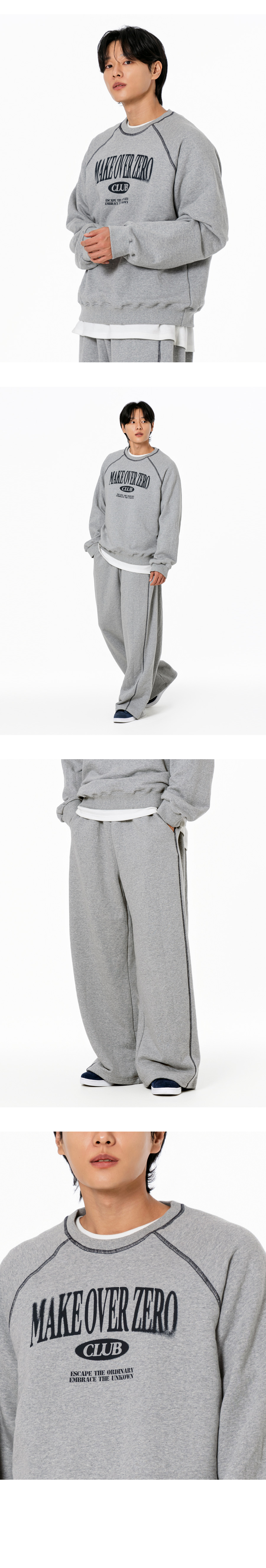 [SET] 블러링 스티치 레글런 오버핏 맨투맨 + 스티치 와이드 트레이닝팬츠 오트밀