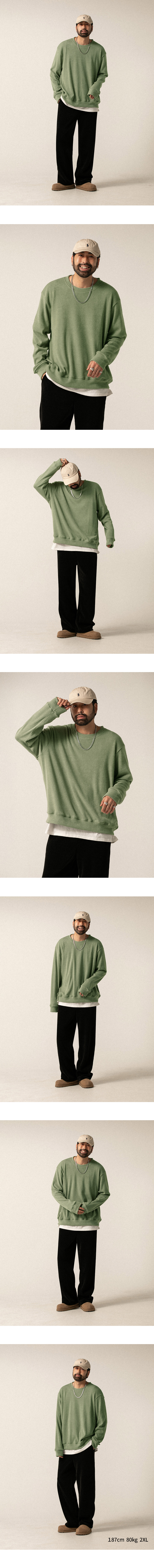 ⦁ 맨투맨의 캐주얼한 감성과 니트의 포근함이 결합된 디자인으로 제작되어 다양한 하의와 매치했을 때 세련된 데일리 룩을 완성해 줍니다