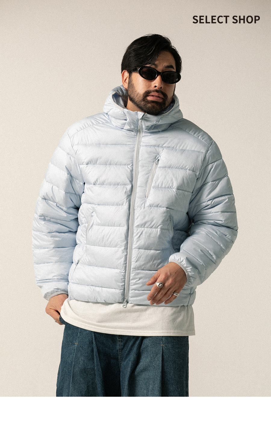 ⦁ 후드와 하이넥 라인이 더해진 퀼팅 패딩점퍼입니다