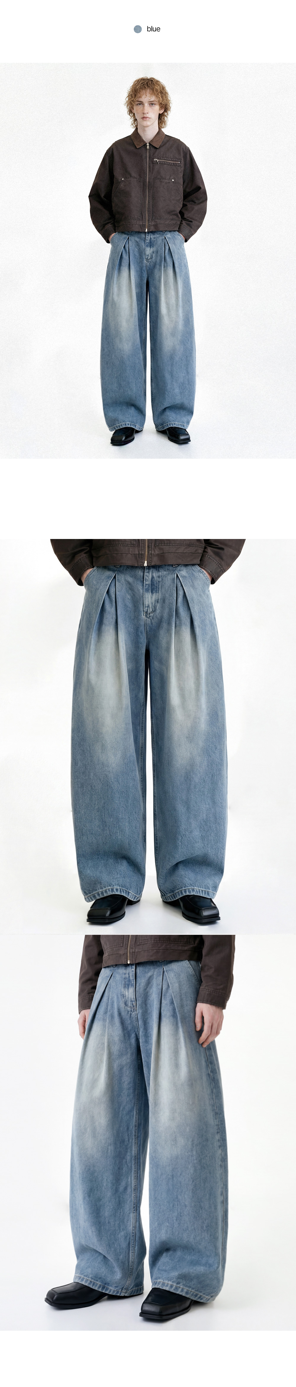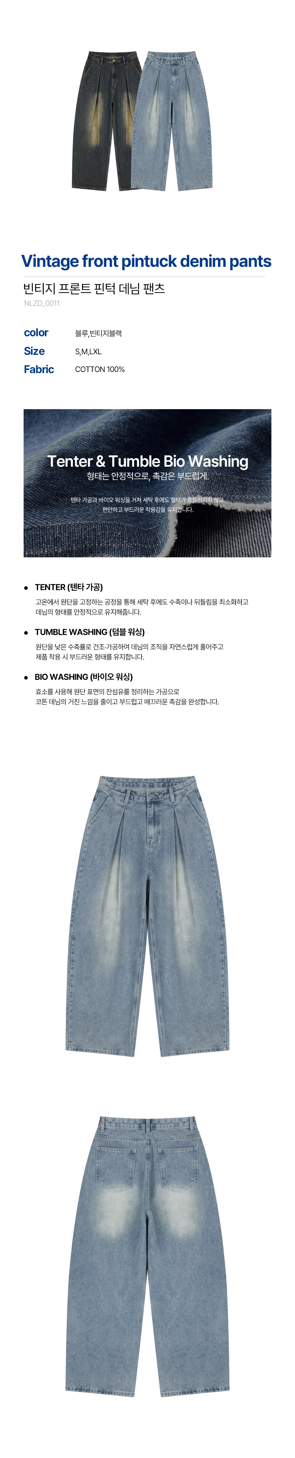Vintage front pintuck denim pants (blue)