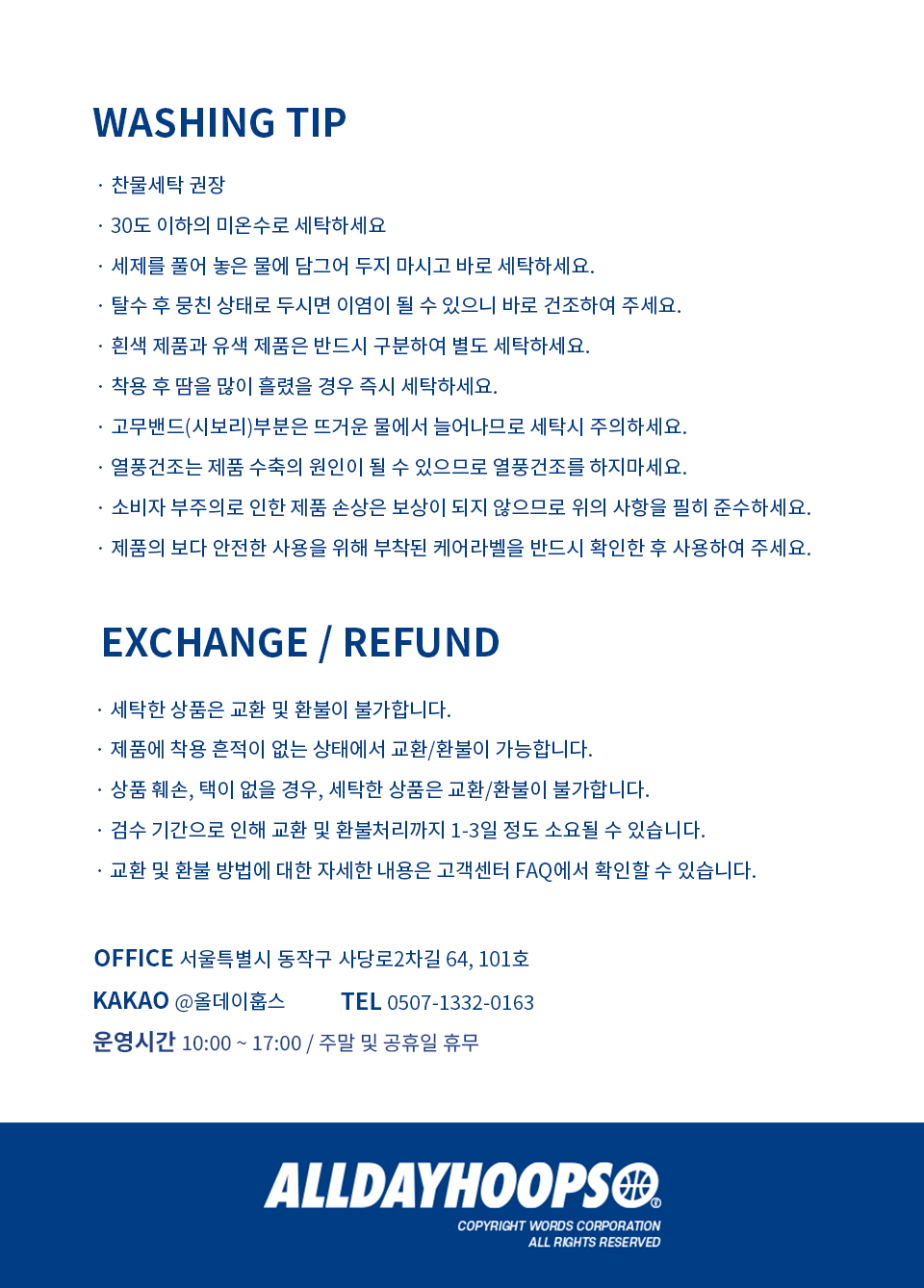 | 교환 / 반품 주소 | 서울 동작구 사당로2차길 64 (사당동) 101호 |