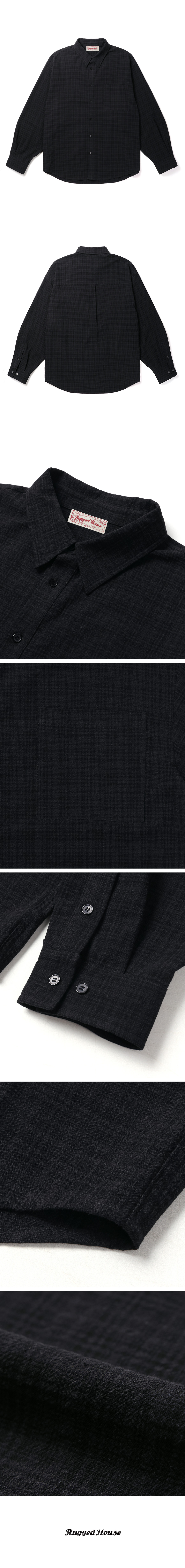 ⦁ 동색 계열 블랙·차콜 체크 패턴이 일반 체크 셔츠와 다른 절제된 톤을 만든다.