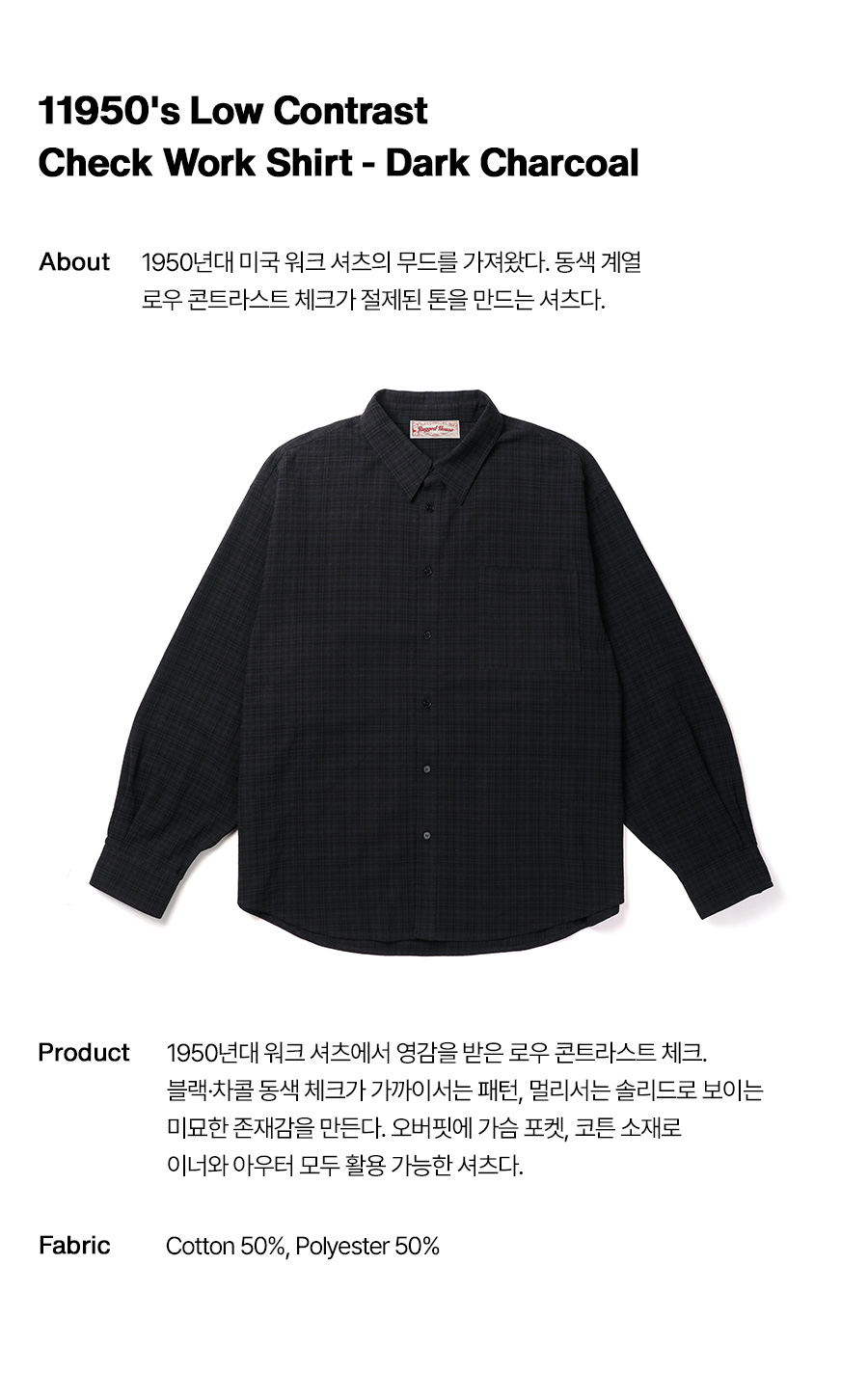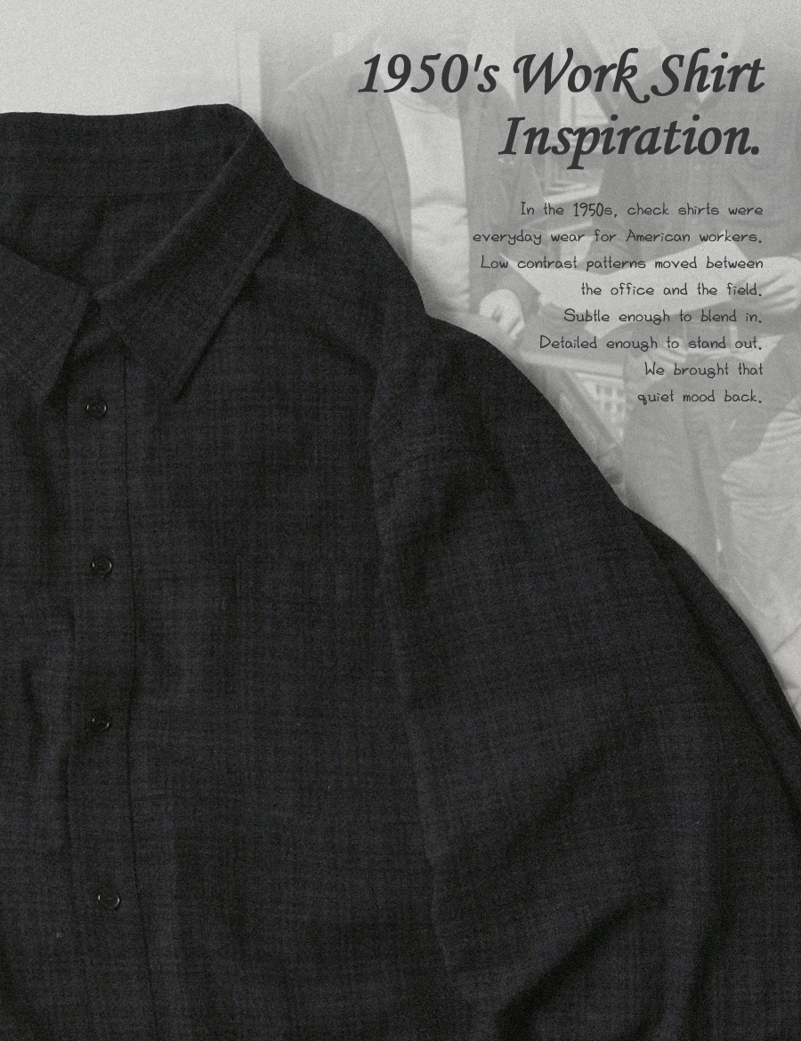 ⦁ 1950년대 미국 워크 셔츠의 무드를 가져온 로우 콘트라스트 체크 셔츠.