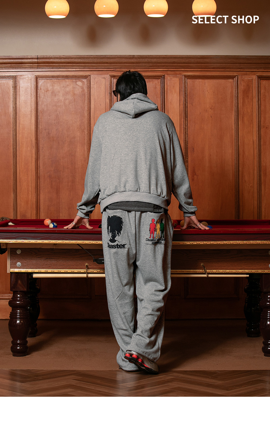 ⦁ 앞뒤로 배치된 유니크한 그래픽 프린트가 스트릿 감성을 더하는 와이드핏 스웻팬츠입니다.