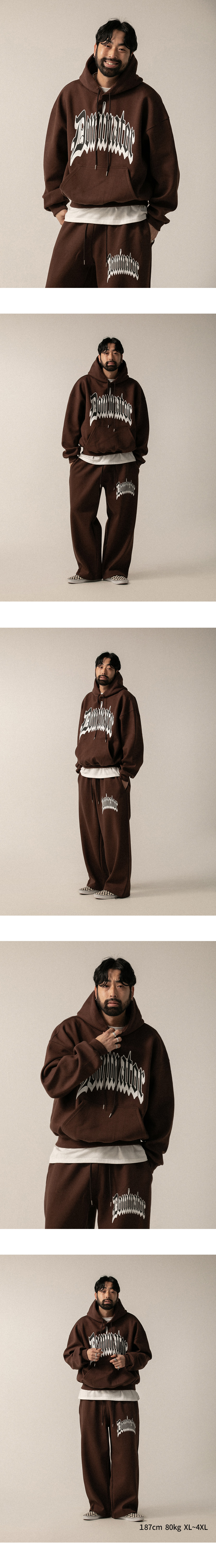 ⦁ 가슴 전면에 고딕 레터링 프린트가 포인트인 후드티입니다