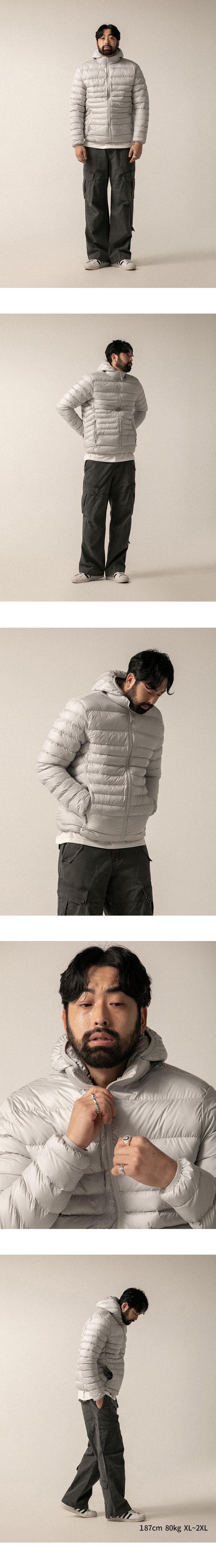 ⦁ 전체적으로 볼륨감 있는 퀼팅 패턴이 적용된 후드 패딩 자켓입니다