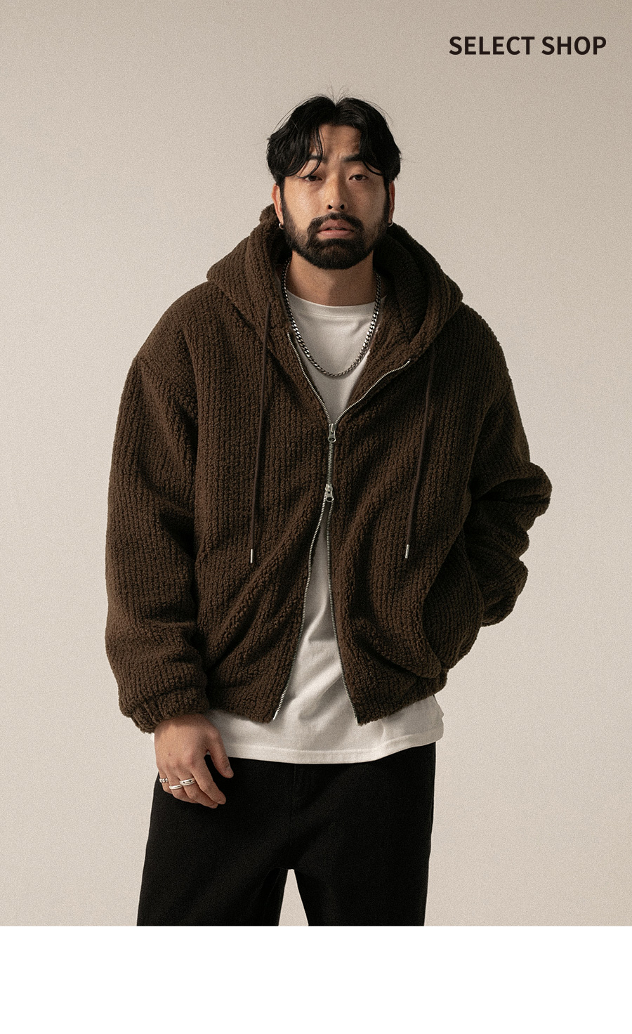 ⦁ 전체적으로 플리스 텍스처가 돋보이는 후드 집업