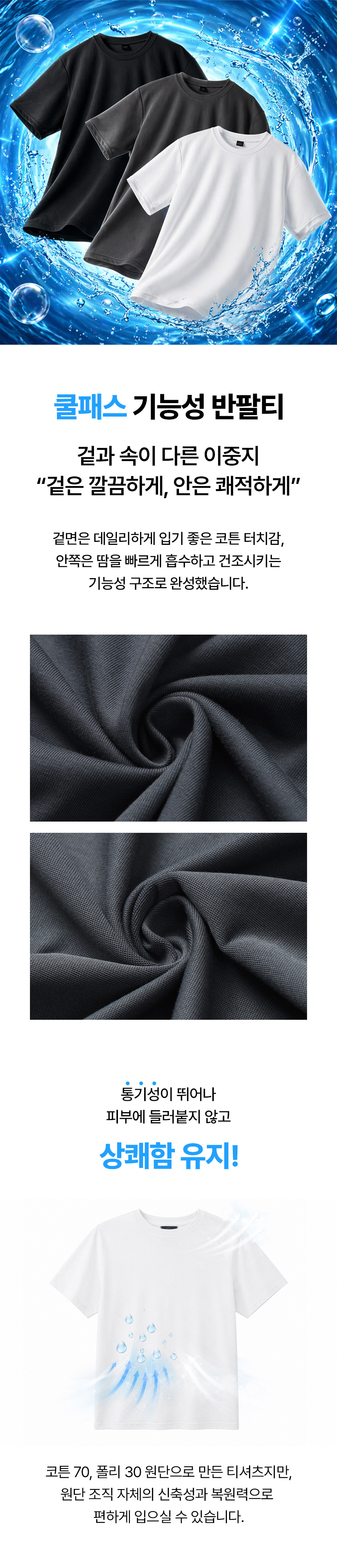 리사이클 쿨링 스판 반팔티셔츠 3컬러 CR001