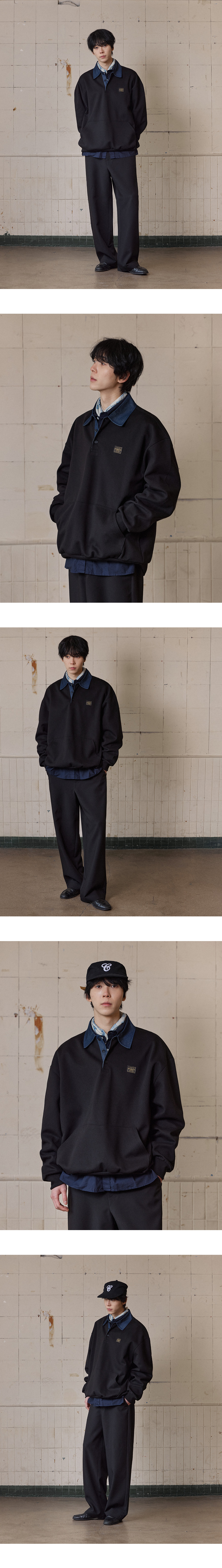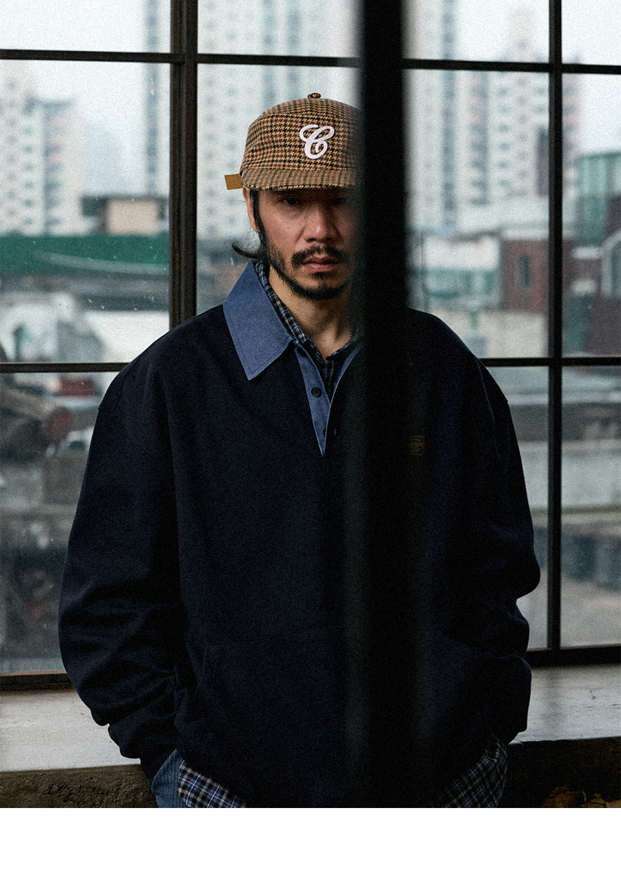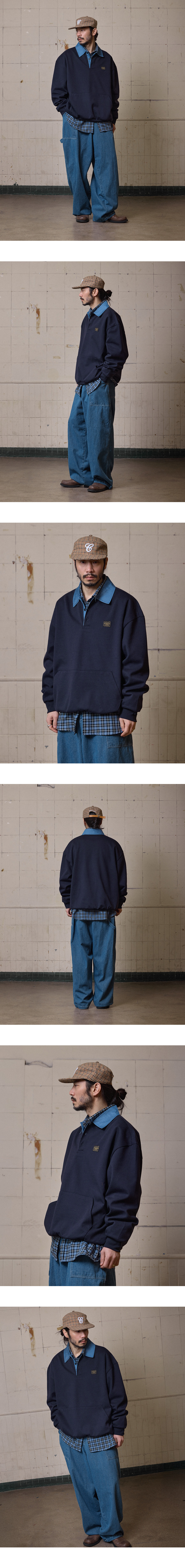 ⦁ 1980년대 미국 캠퍼스 럭비 셔츠의 구조를 복각한 카라 포켓 맨투맨.