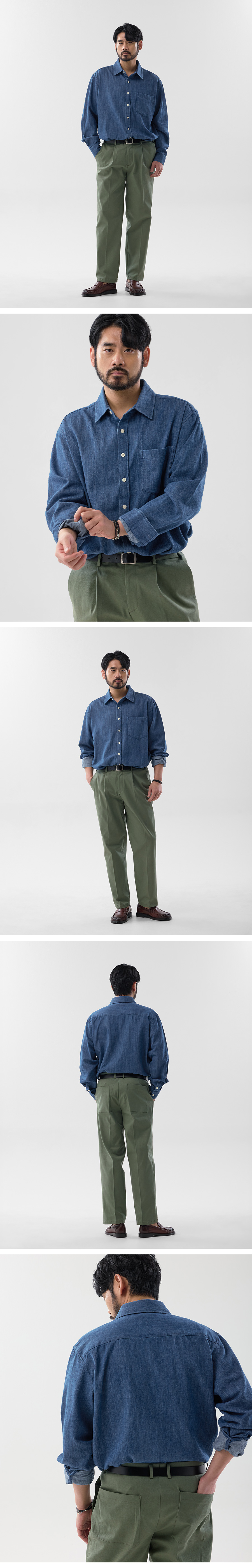 슬라브 포켓 데님 셔츠 중청