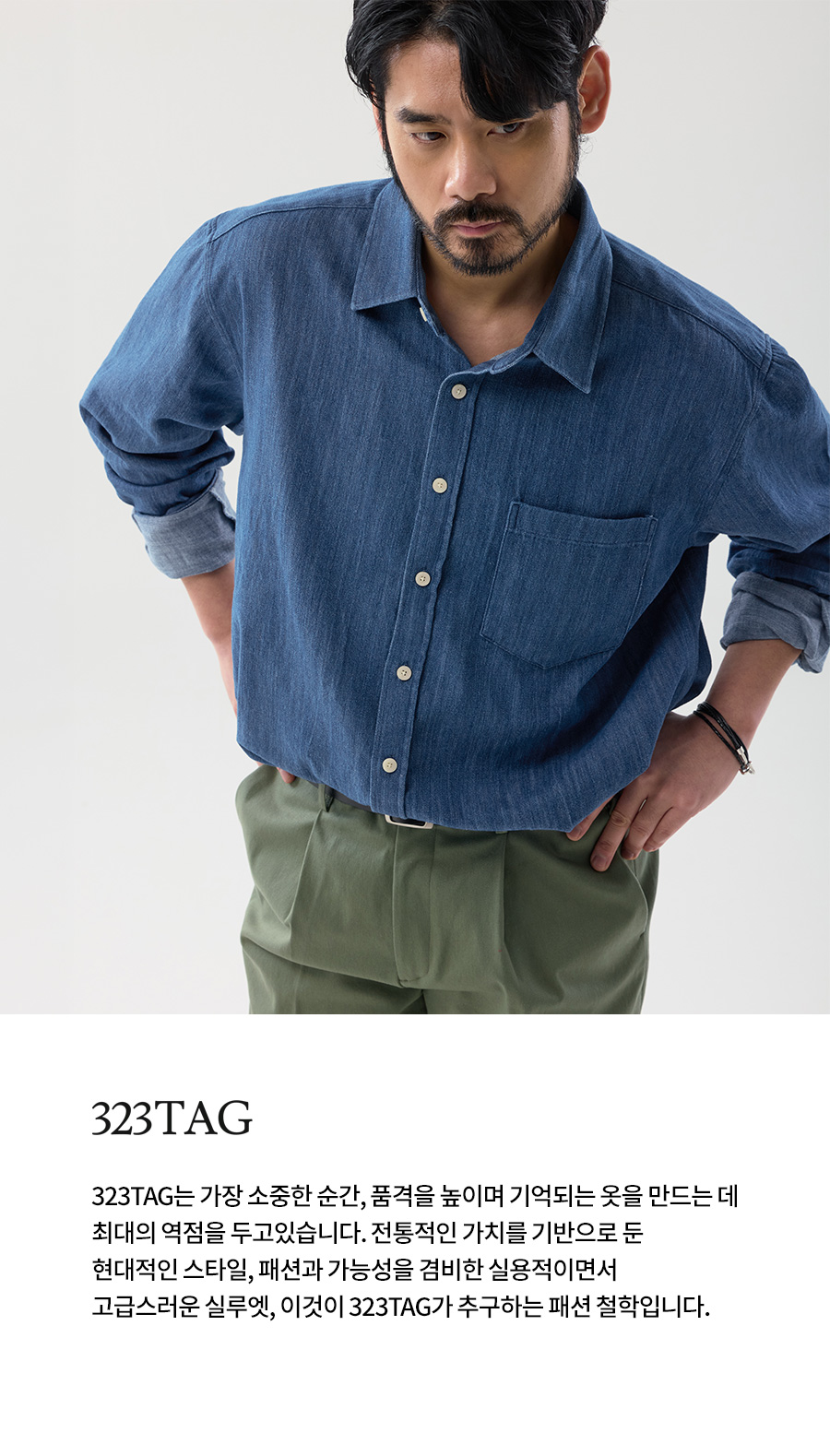 ⦁ 가슴 포켓 디테일이 더해져 심플한 구성을 완성해줍니다