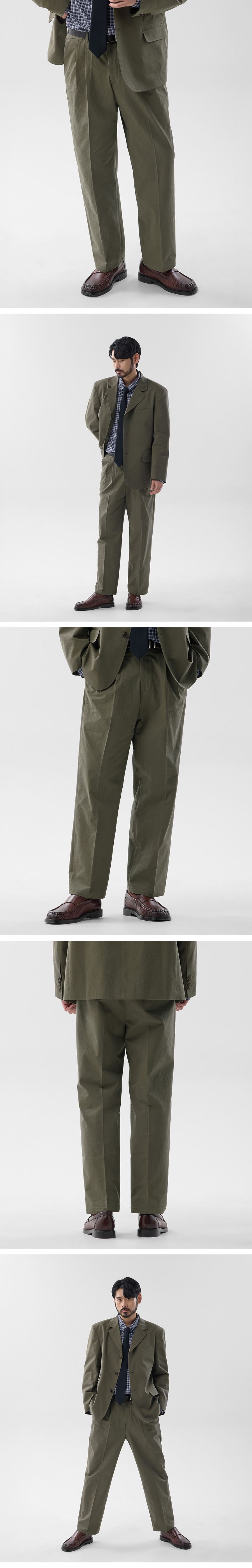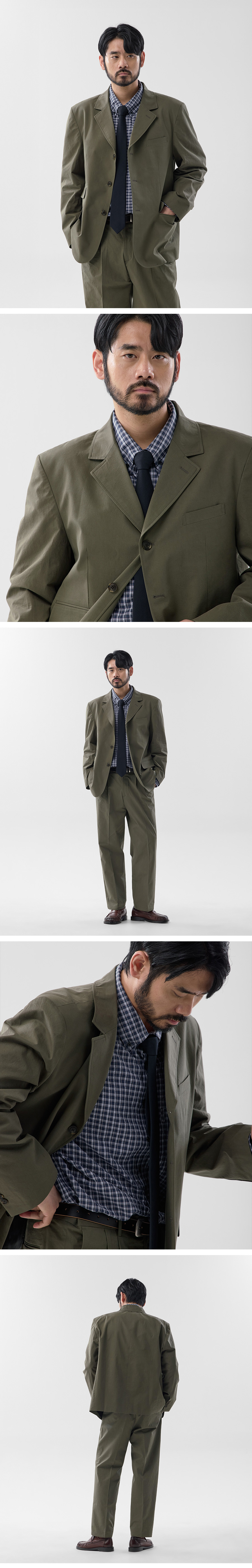 워시드 미니멀 블레이저 셋업 카키