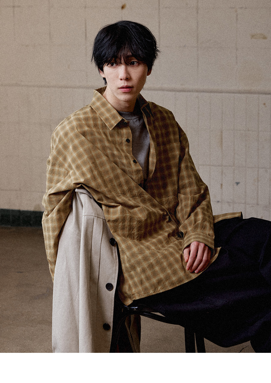 스모키 타탄 체크 셔츠 베이지