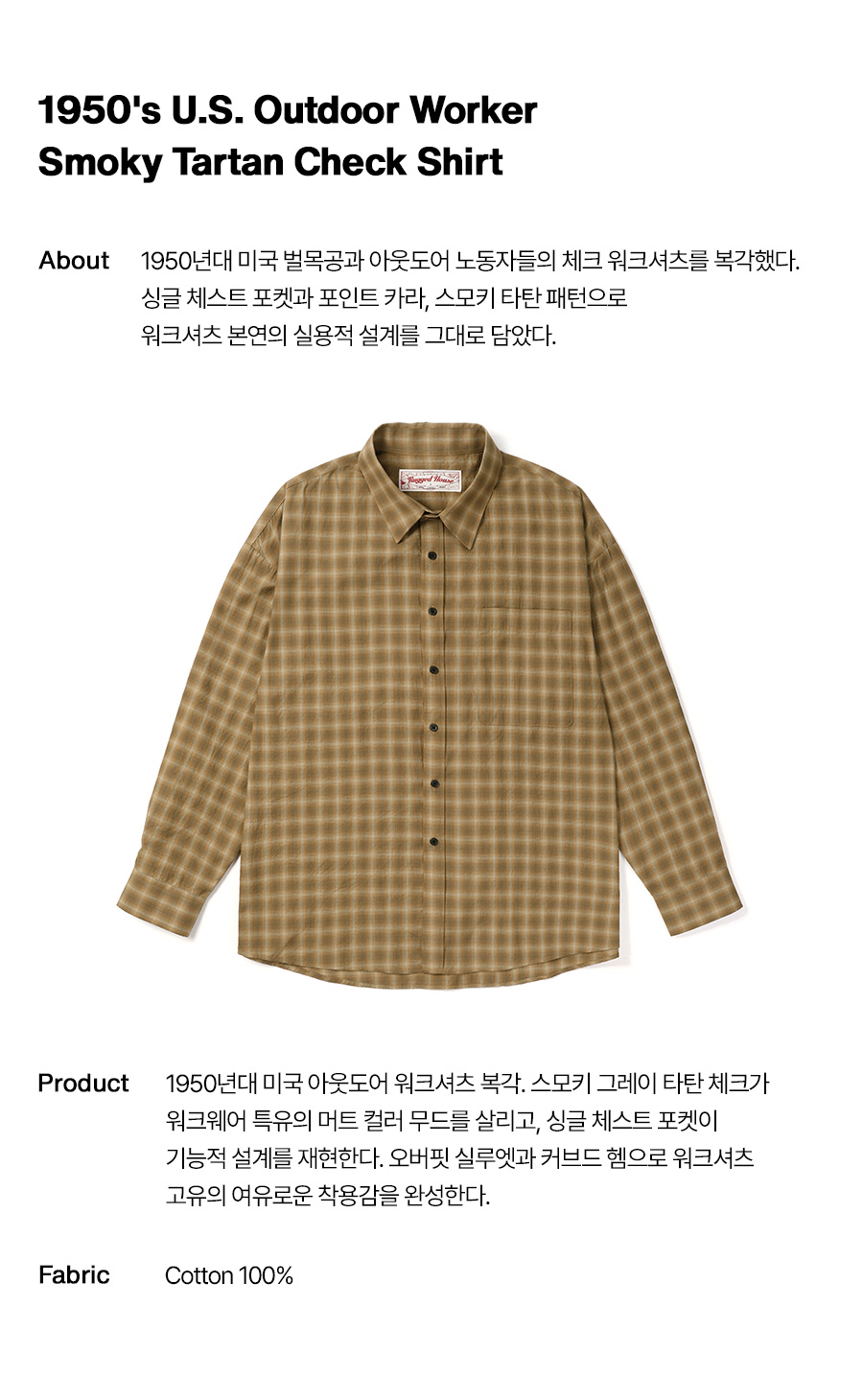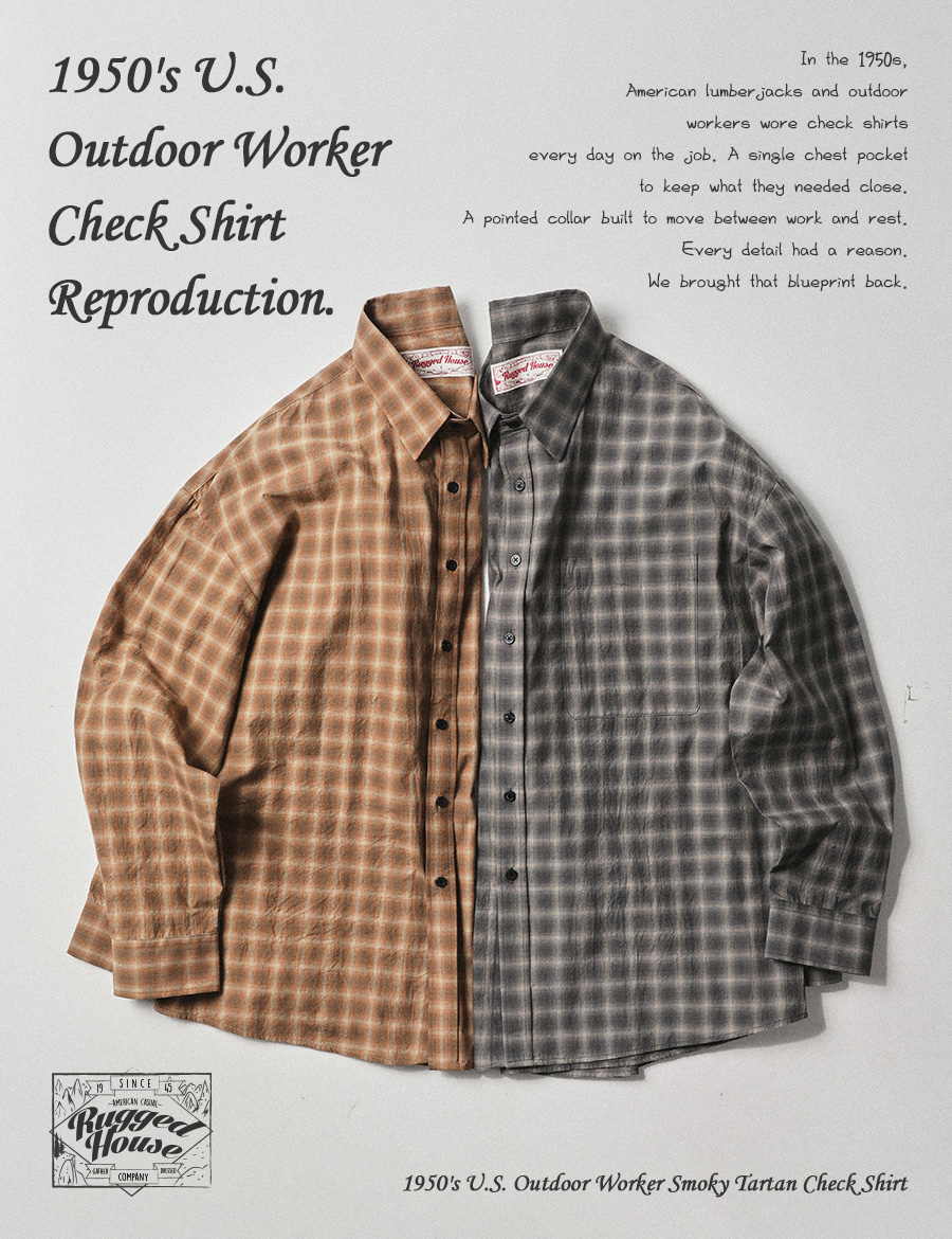 ⦁ 거친 야외 환경에서 매일 입던 내구성 있는 체크 셔츠가 이 제품의 원형이다.