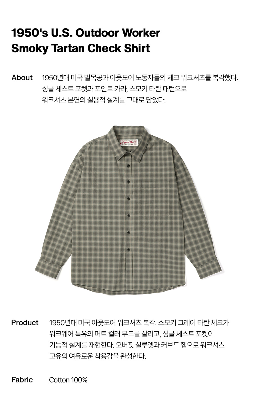 ⦁ 거친 야외 환경에서 매일 입던 내구성 있는 체크 셔츠가 이 제품의 원형이다.
