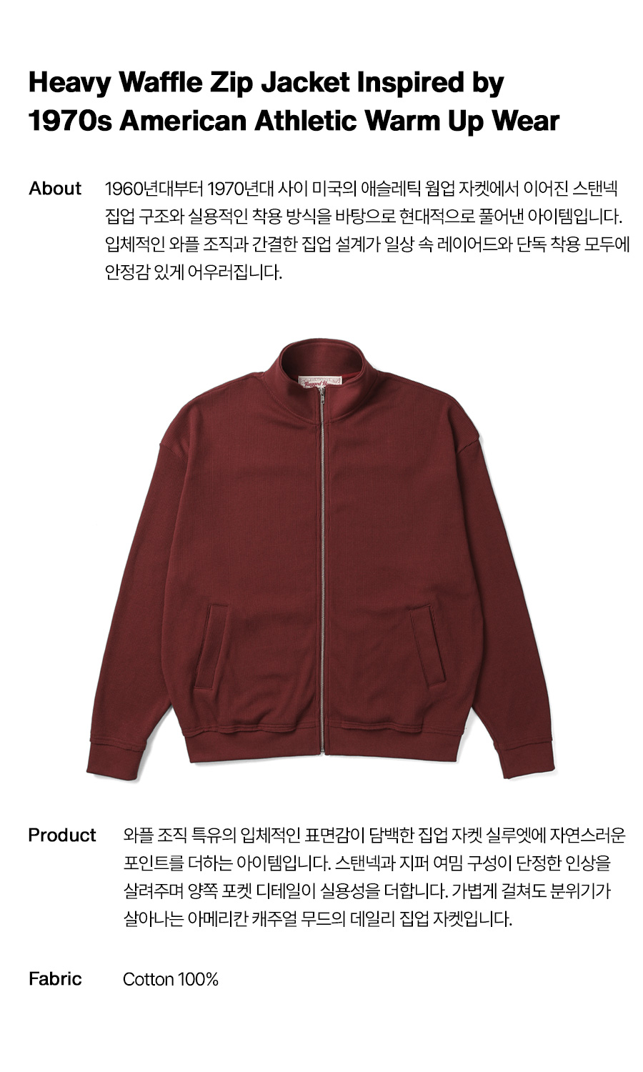 헤비 와플 집업 자켓 와인