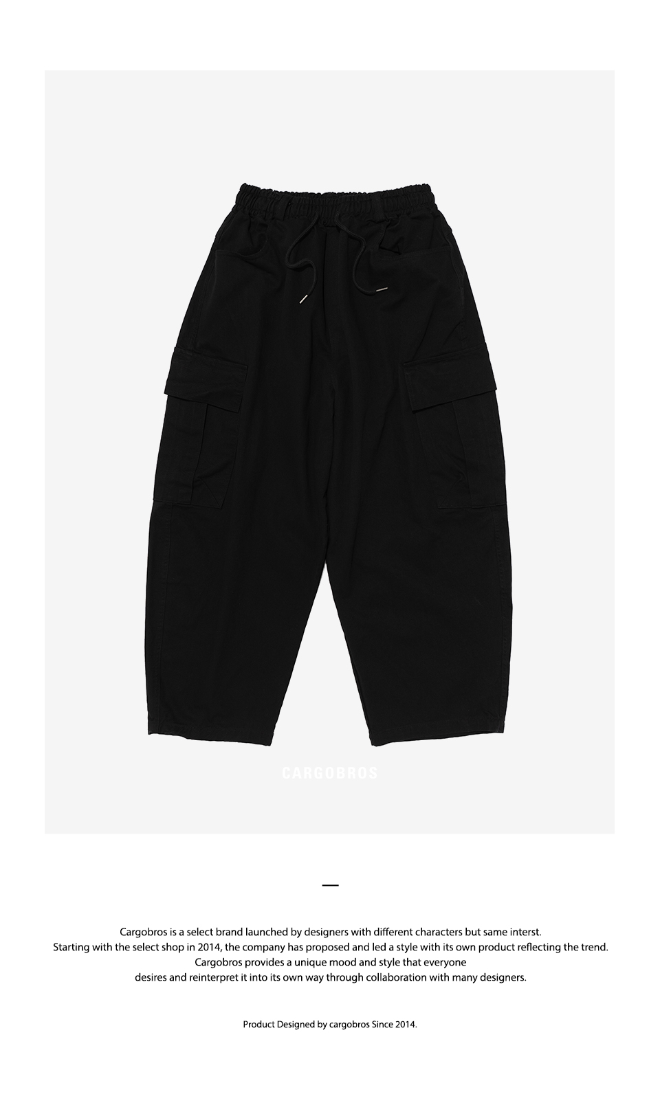 WASHED COTTON CURVED BIG CARGO PANTS (BLACK)
