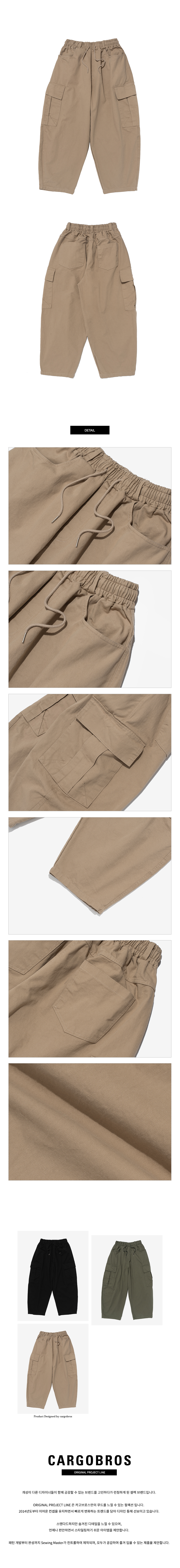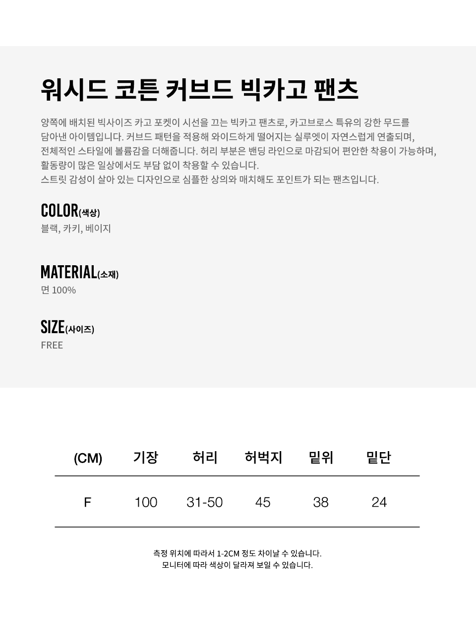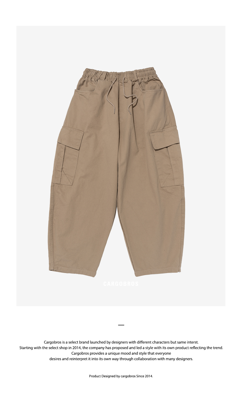 WASHED COTTON CURVED BIG CARGO PANTS (BEIGE)