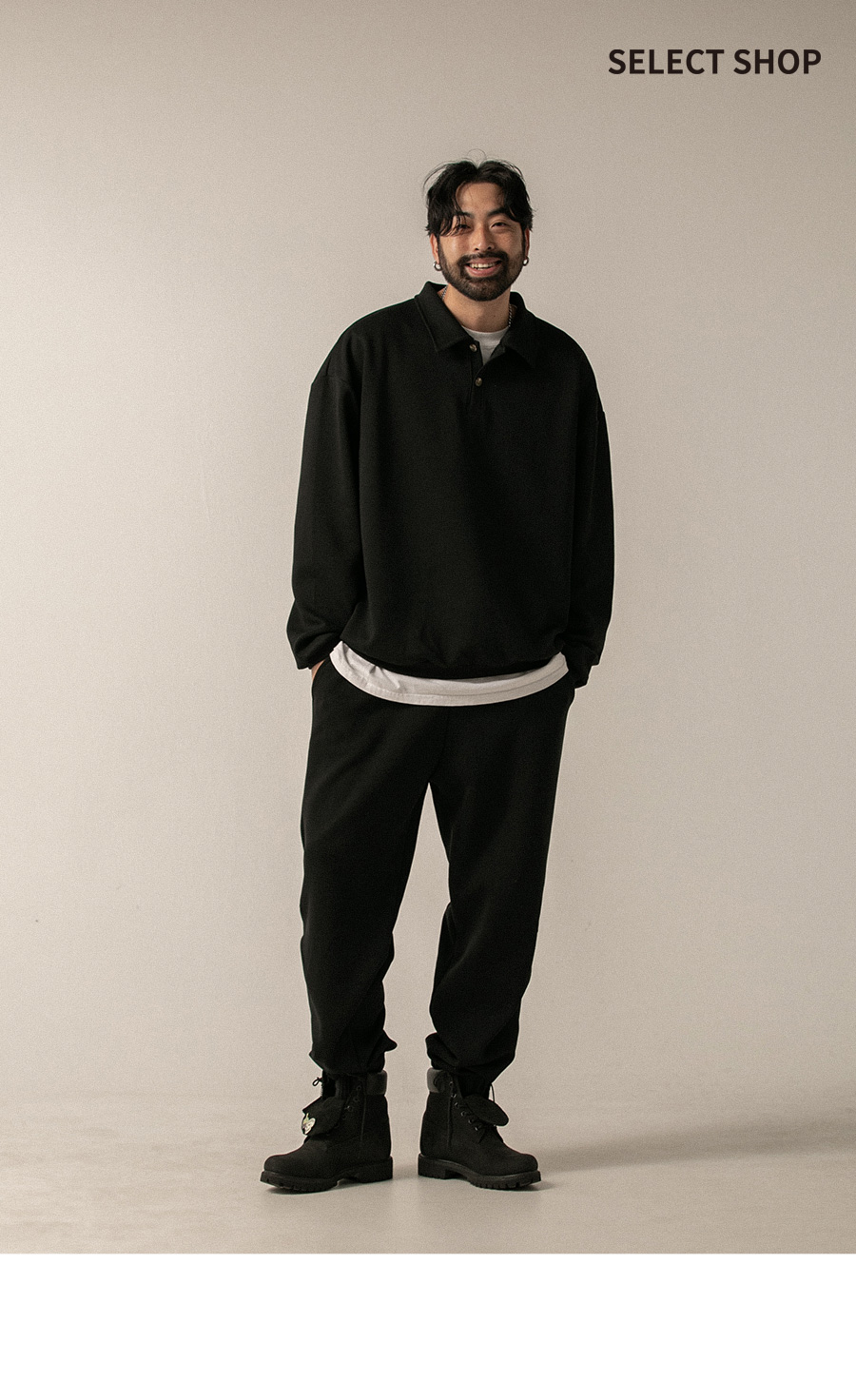 ⦁ 여유 있는 와이드핏 실루엣으로 자연스럽게 떨어지는 라인이 매력적입니다