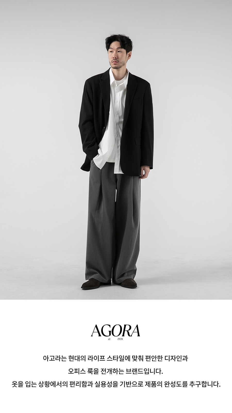 ⦁ 여유 있는 와이드핏 실루엣으로 떨어져 부담 없이 스타일링하기 좋습니다