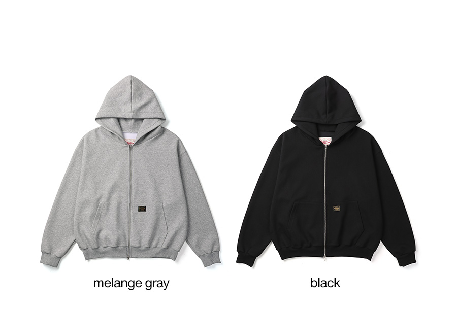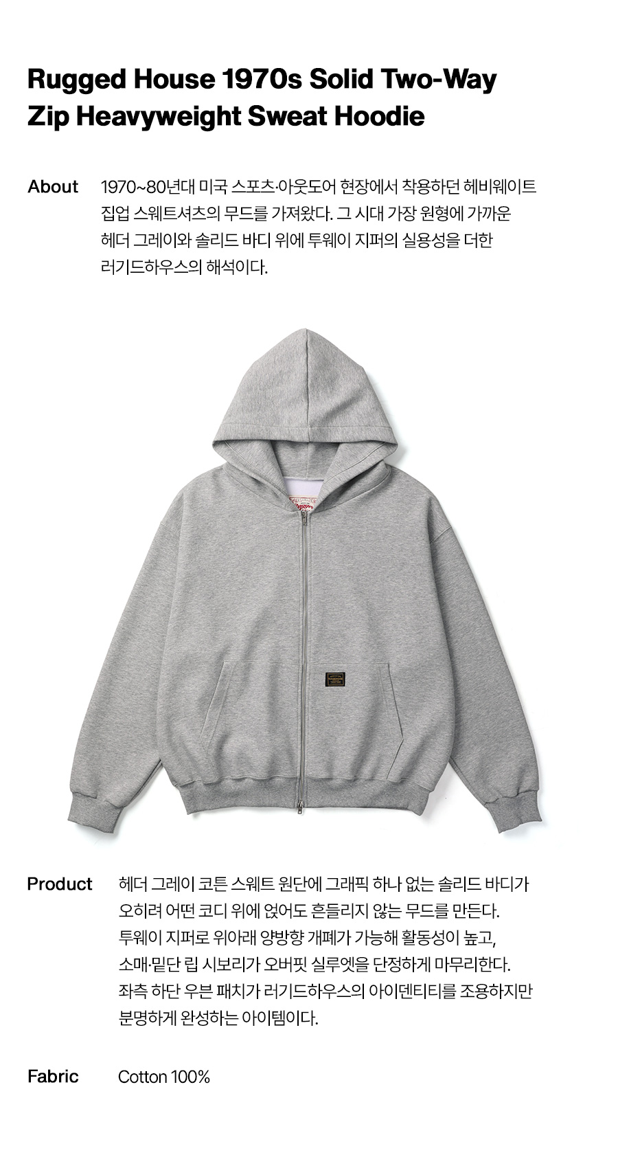 ⦁ 헤더 그레이 코튼 바디, 투웨이 지퍼, 소매·밑단 립 시보리.