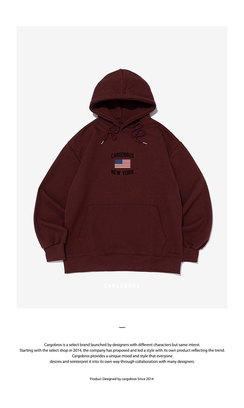 (BIGSIZE) AMERICAN NEWYORK HOOD T-SHIRT (WINE)