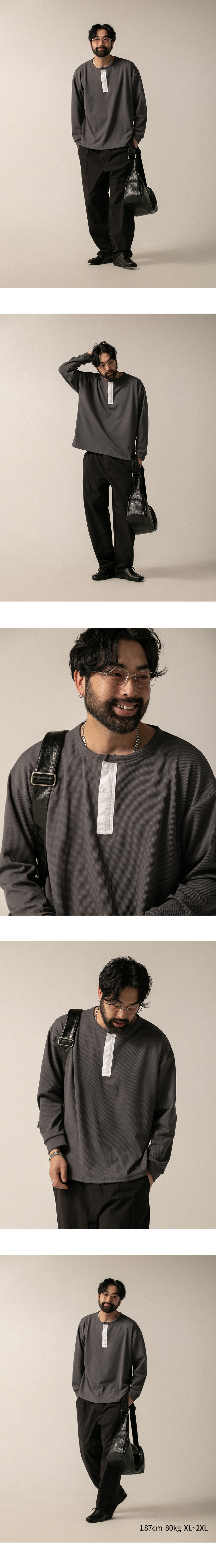 ⦁ 디자인 : 헨리넥 버튼 디테일이 더해진 베이식한 상의