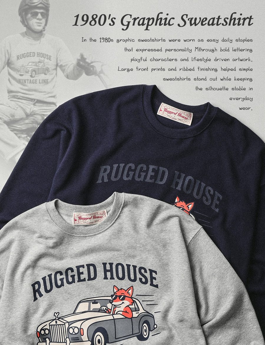 ⦁ 러기드하우스가 빈티지 그래픽 스웨트의 재미를 일상용 맨투맨으로 정리한 한 장.