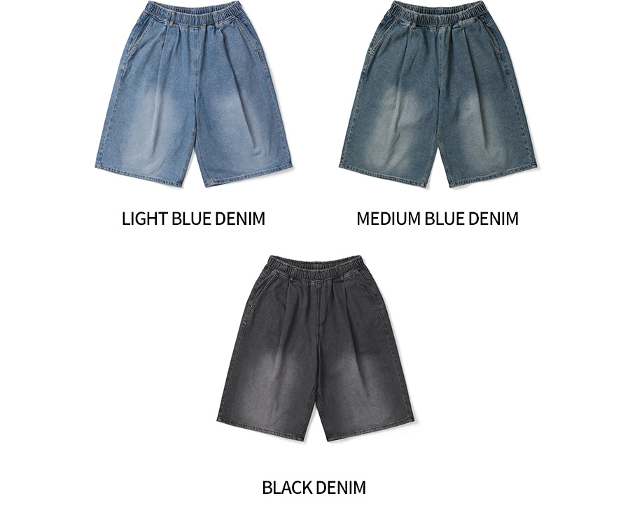 BC 벨트루프 원턱 버뮤다 데님팬츠 (BLACK DENIM)