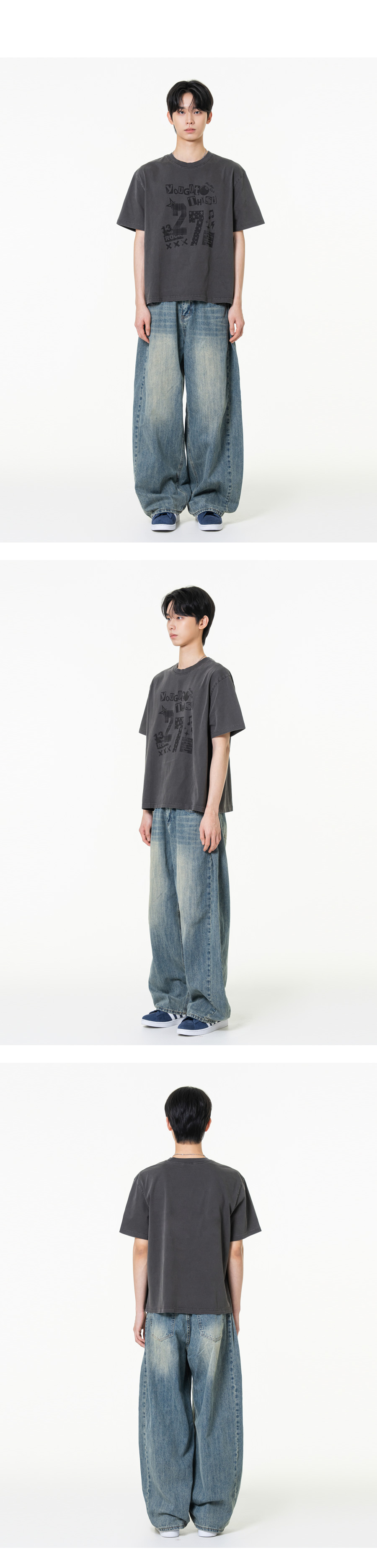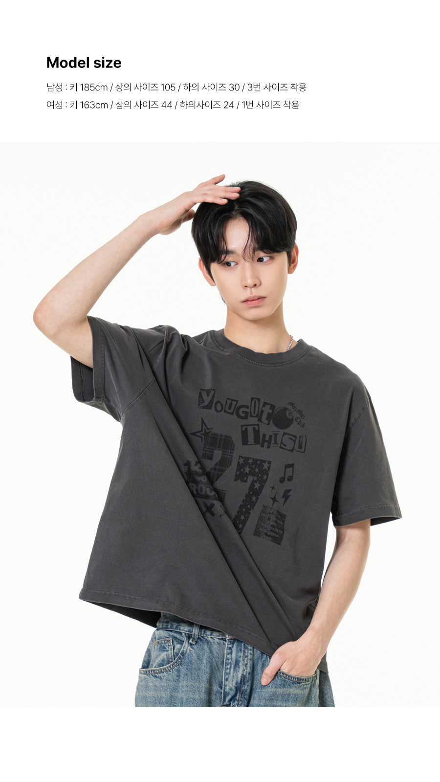 트웬티세븐 피그먼트 크롭 반팔티셔츠 챠콜