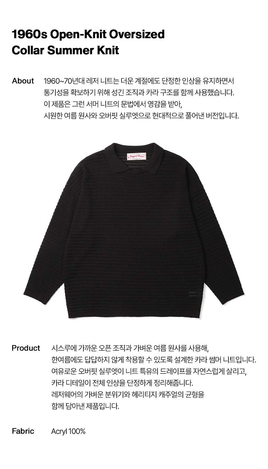 ⦁ 성기게 짜인 오픈 조직과 카라 디테일이 어우러진 오버핏 썸머 니트입니다.