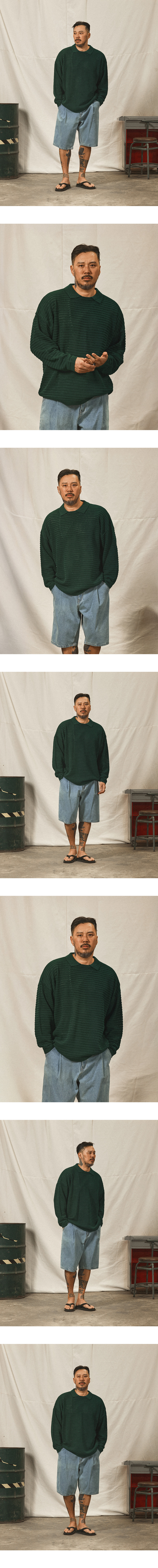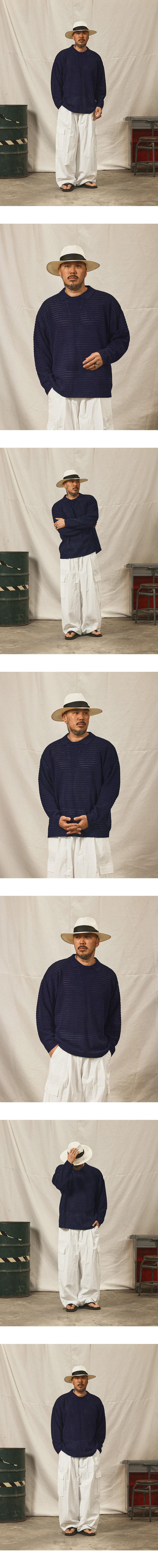 쿨 텍스처 오버핏 카라 썸머 니트 네이비