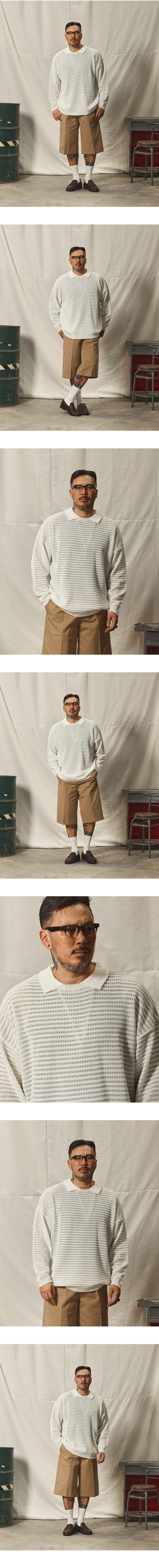 쿨 텍스처 오버핏 카라 썸머 니트 아이보리