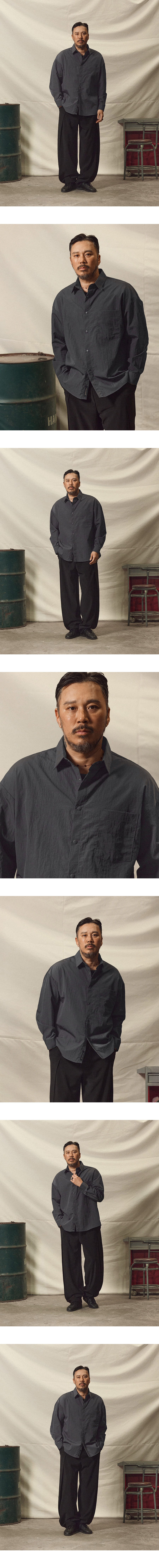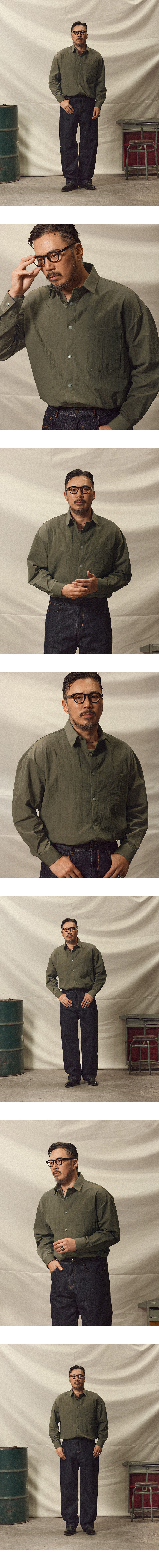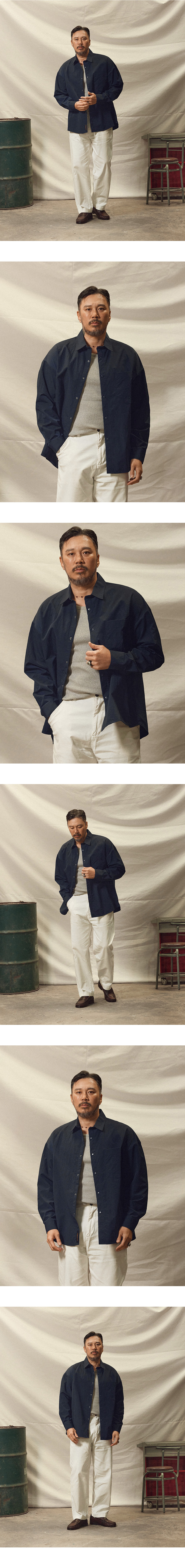 ⦁ 전면 스냅 버튼 디테일과 가슴 한쪽 포켓 그리고 간결하게 떨어지는 실루엣이 또렷한 포인트를 만든다.