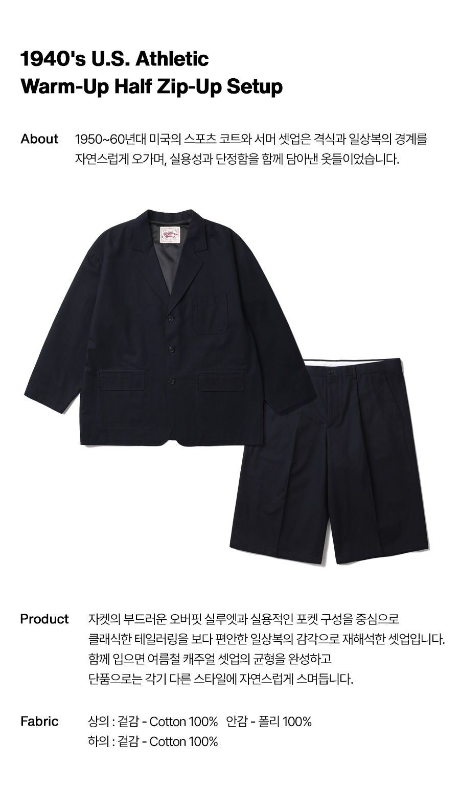 ⦁ 1950~60년대 레저 재킷 셋업 무드를 현대적으로 풀어낸 캐주얼 테일러드 자켓 셋업입니다.