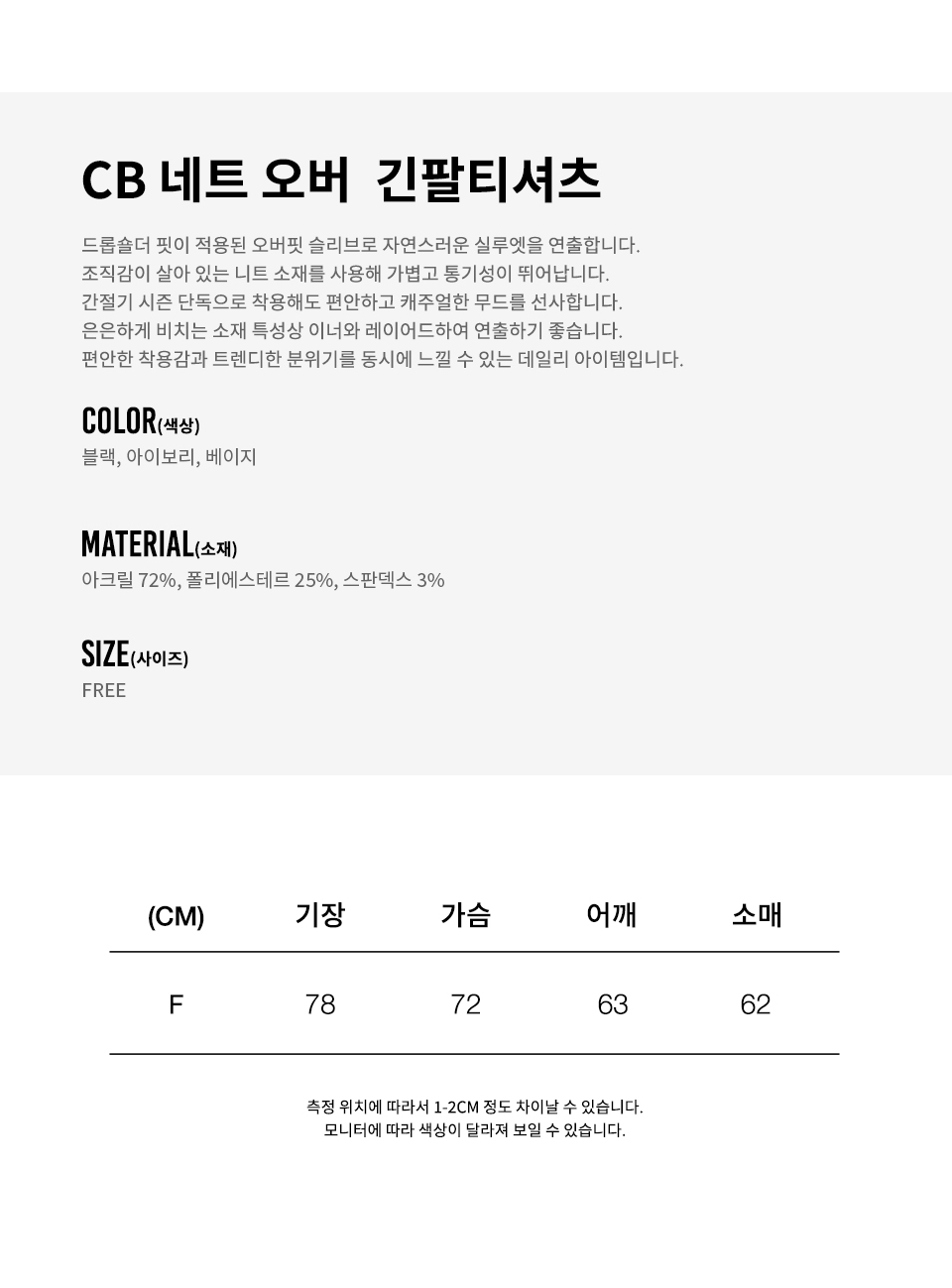 - 사이즈는 측정방법에 따라 1~3cm 정도의 오차가 있을 수 있습니다.