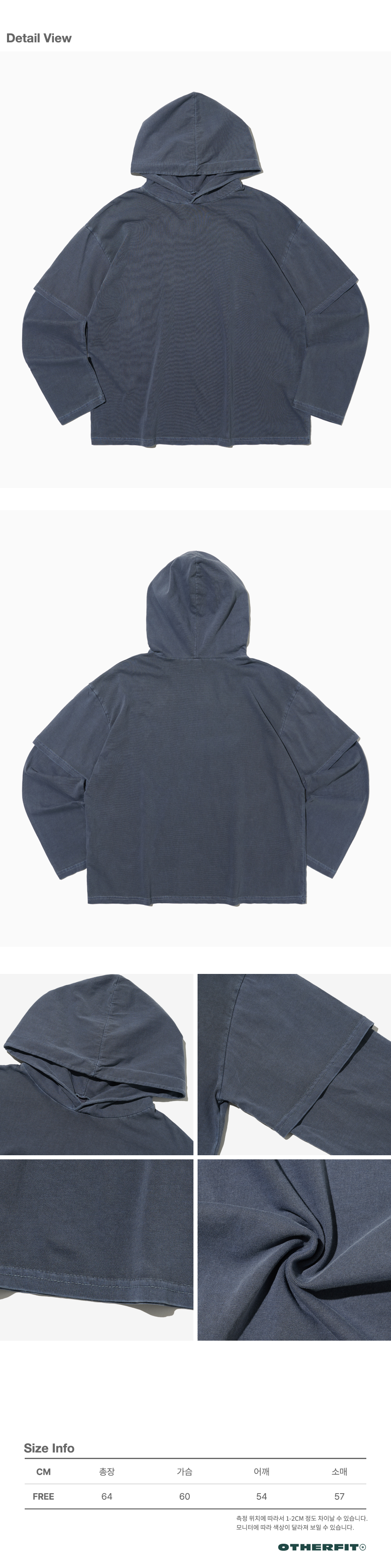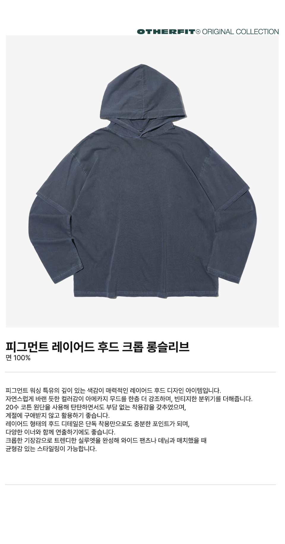 피그먼트 레이어드 후드 크롭 롱슬리브 (네이비)